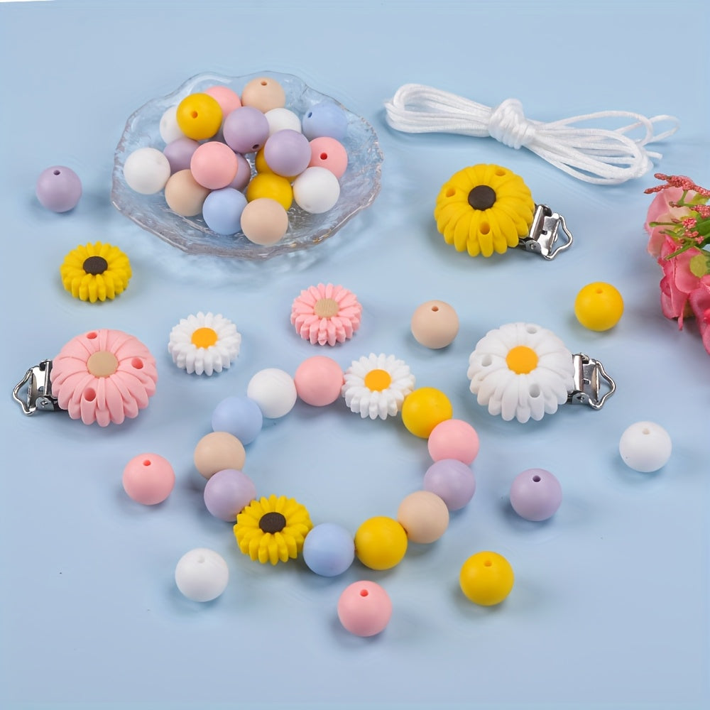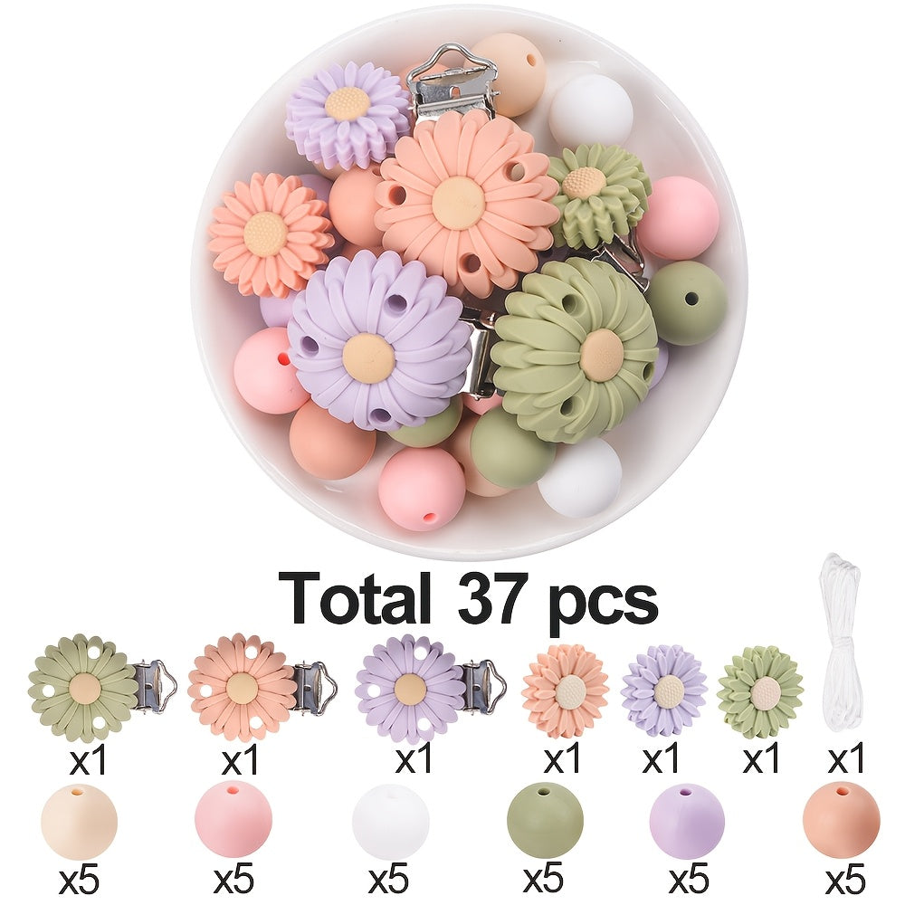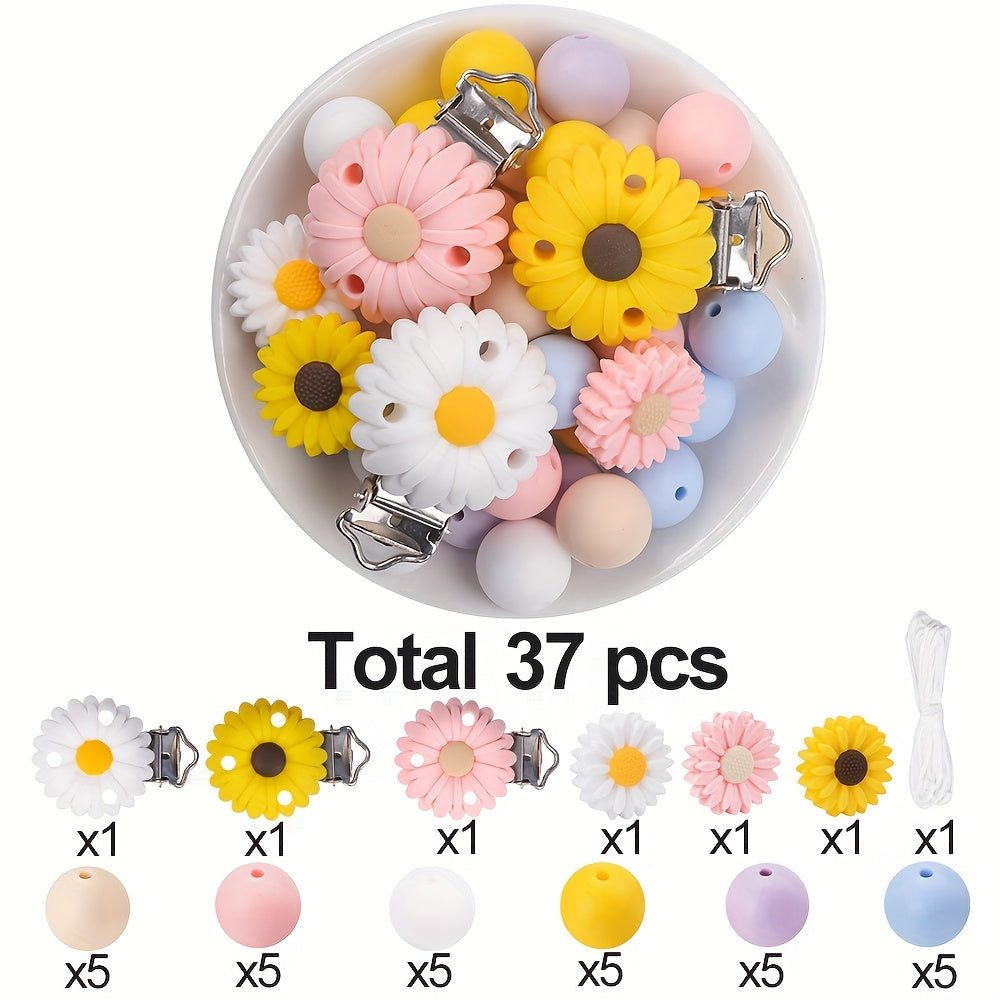 This set includes 37 decorative beads in various sizes and styles for creating your own jewelry pieces. The beads feature a daisy focal design and come in a random mix of colors and patterns.