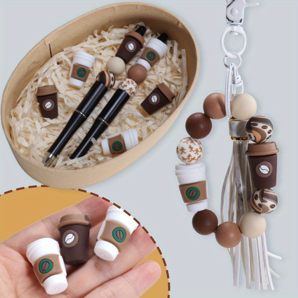 Create charming coffee-themed DIY accessories with this set of 6 silicone beads. Perfect for bracelets, keychains, lanyards, and more.