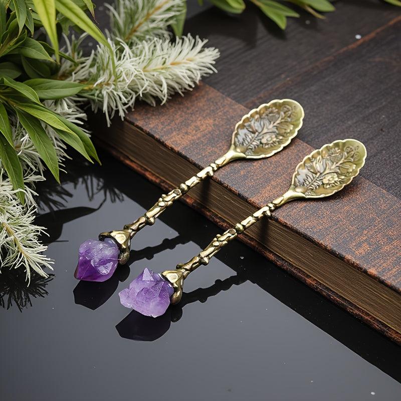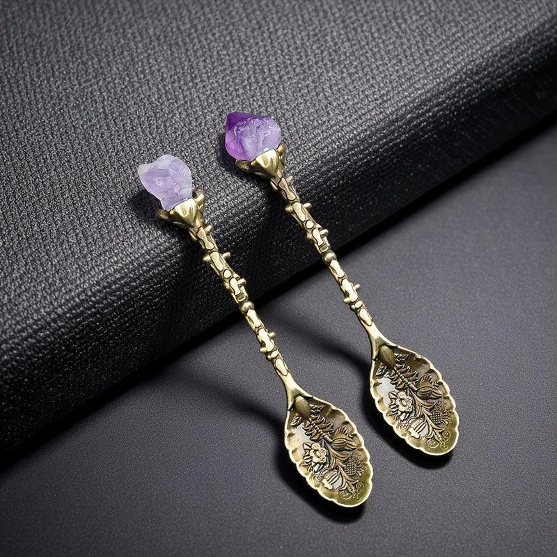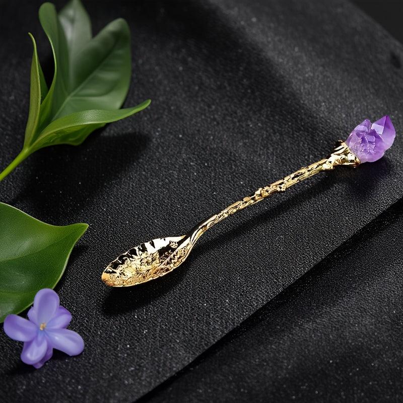 Enhance your coffee experience with these unique spoons made from amethyst clusters. Perfect for coffee shops, kitchens, offices, bars, and tableware decoration.