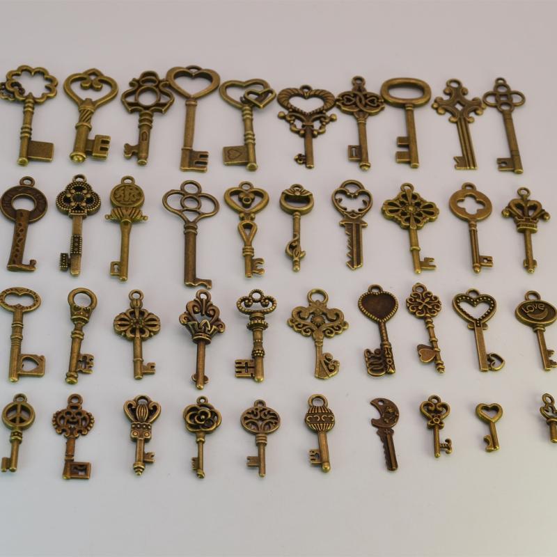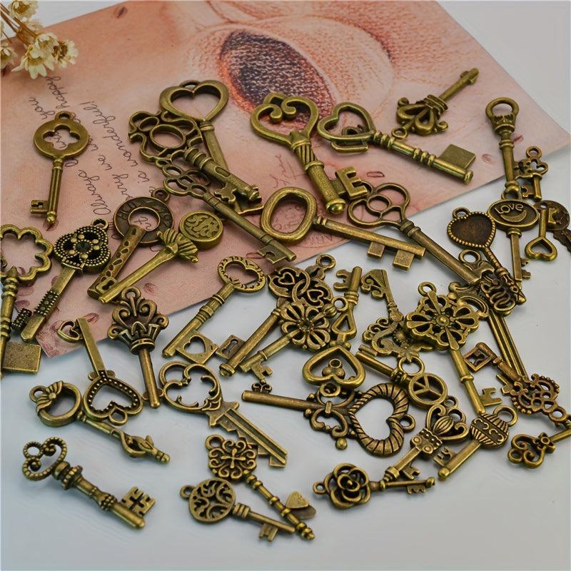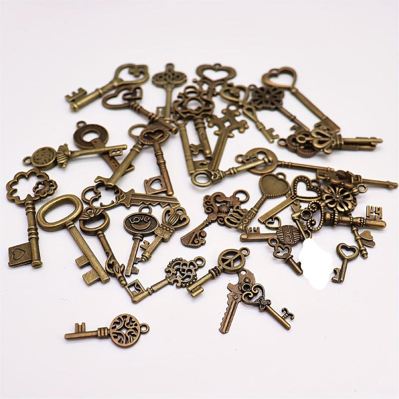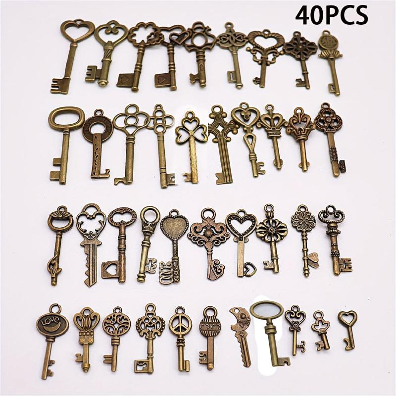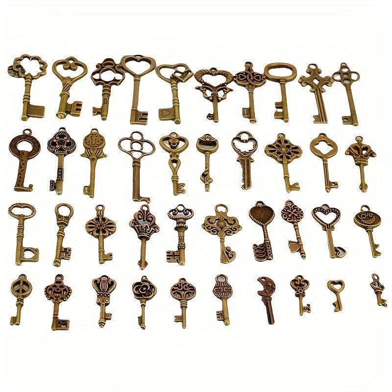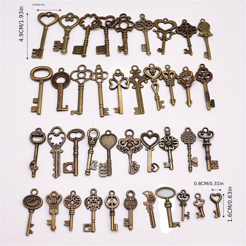 Add a touch of vintage charm to your DIY jewelry projects with this set of 40 mixed antique style bronze key charms. Perfect for weddings, crafts, and more!