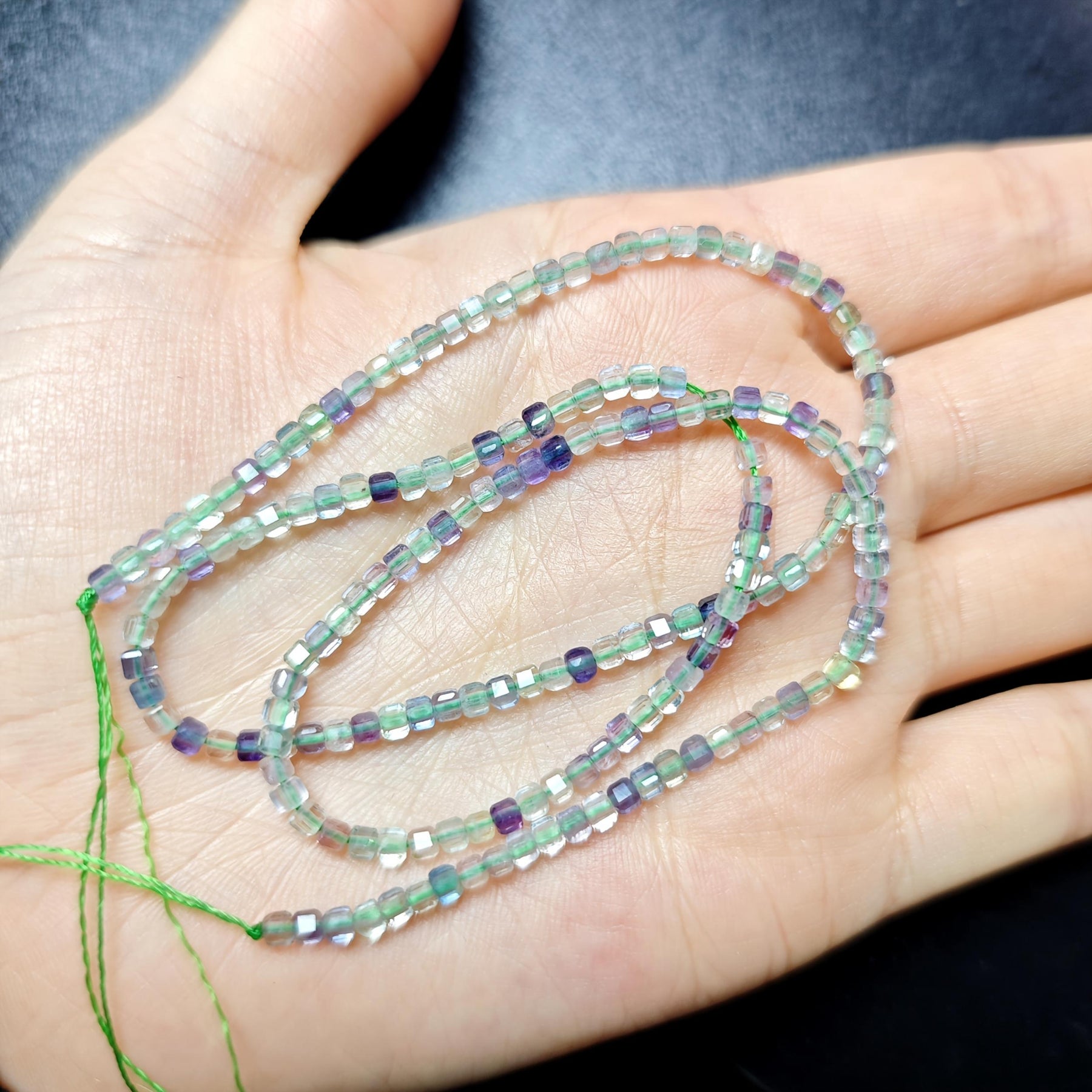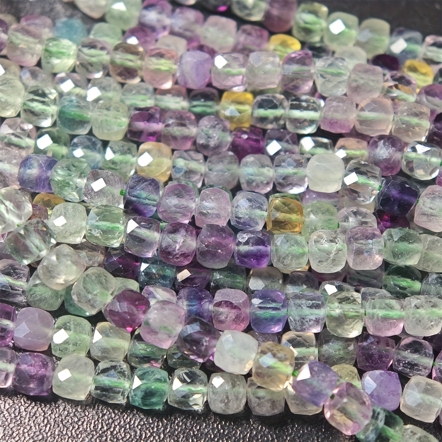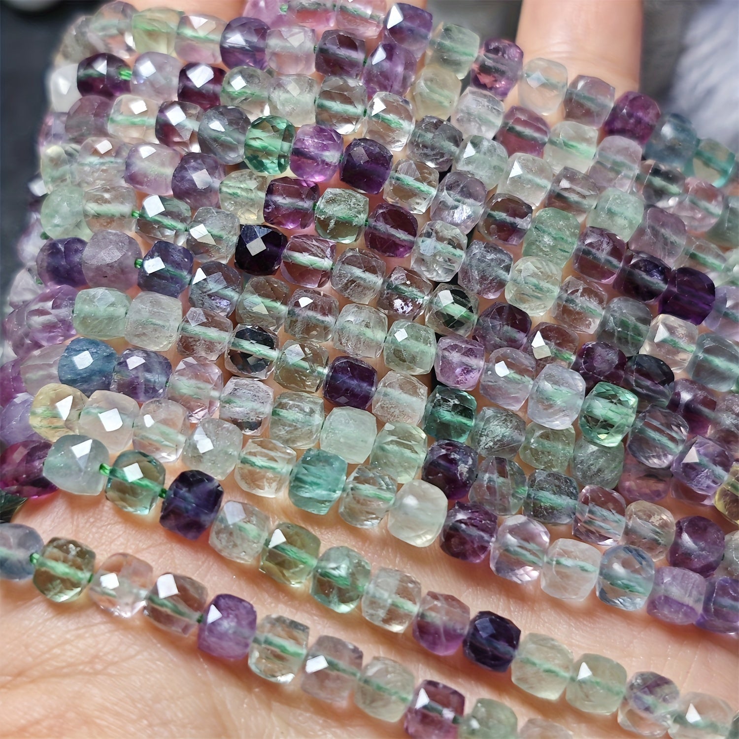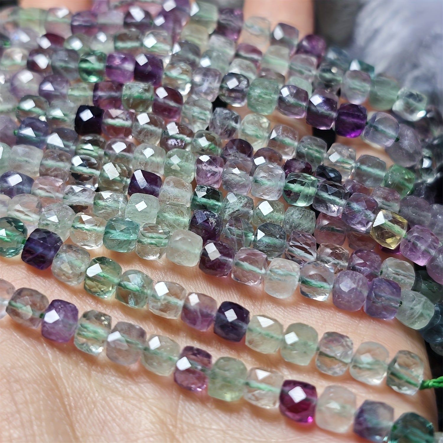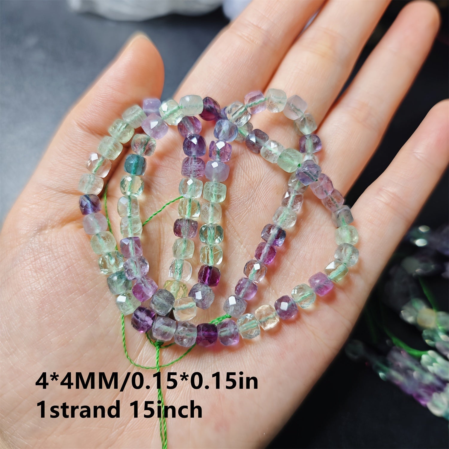 Create stunning DIY jewelry with these 4mm natural fluorite spacer beads. The beads feature polished facets and inner sparkle, perfect for bracelets and more.