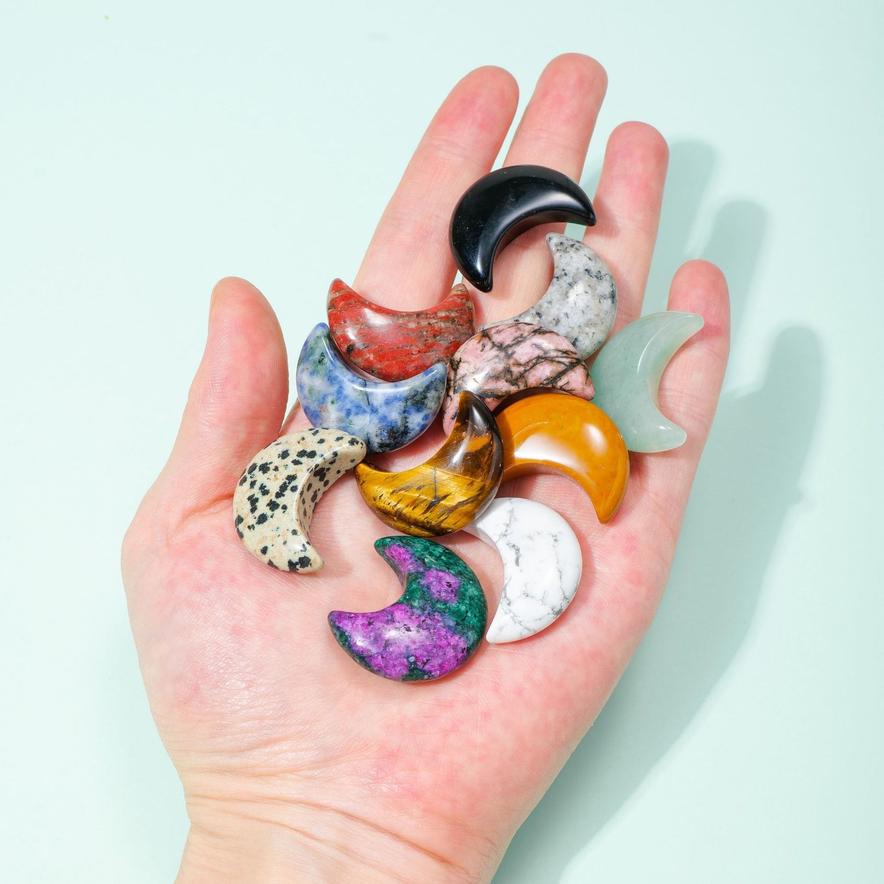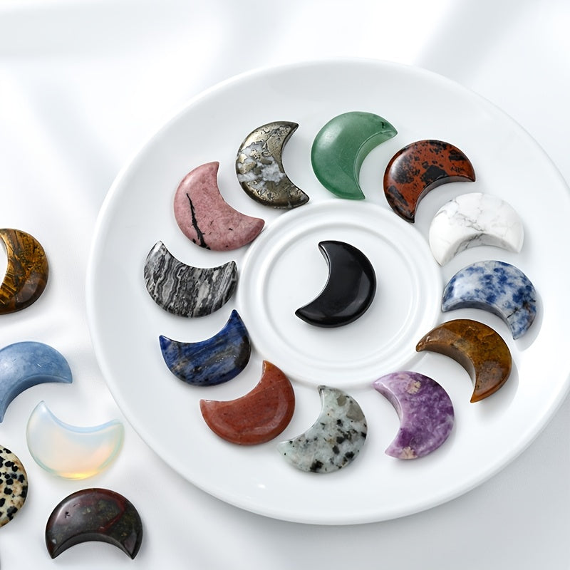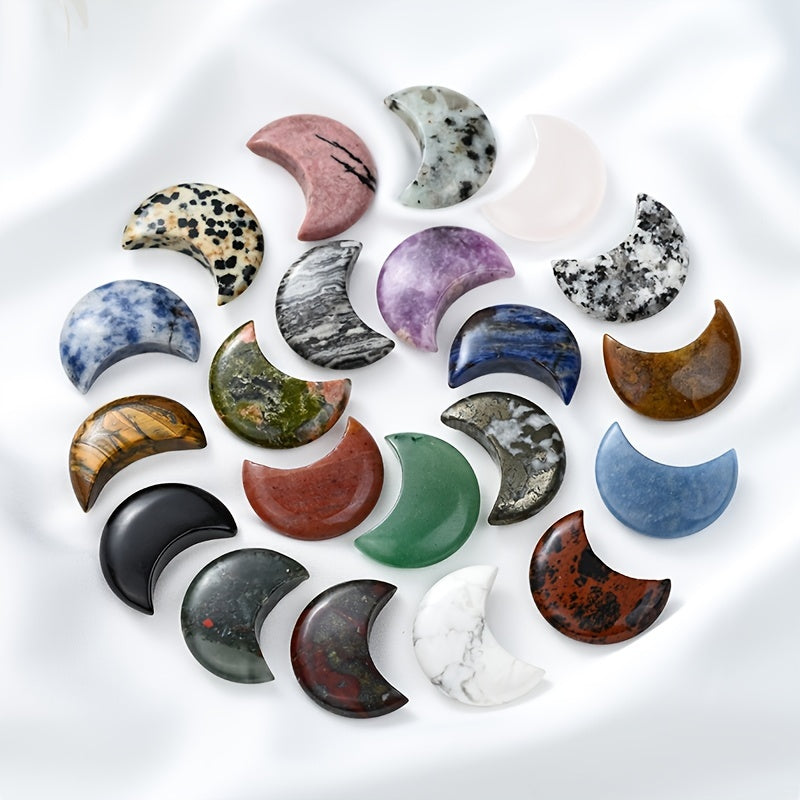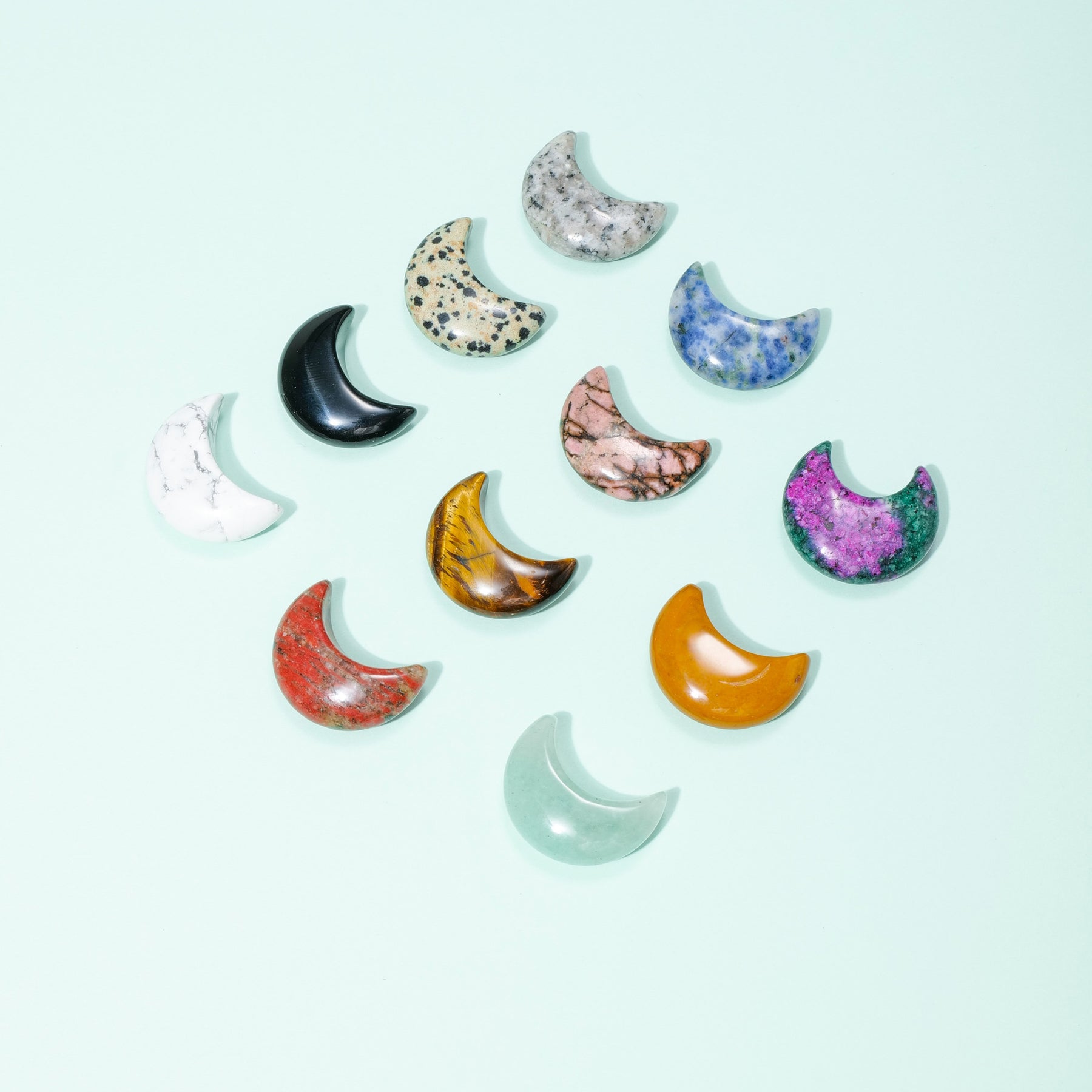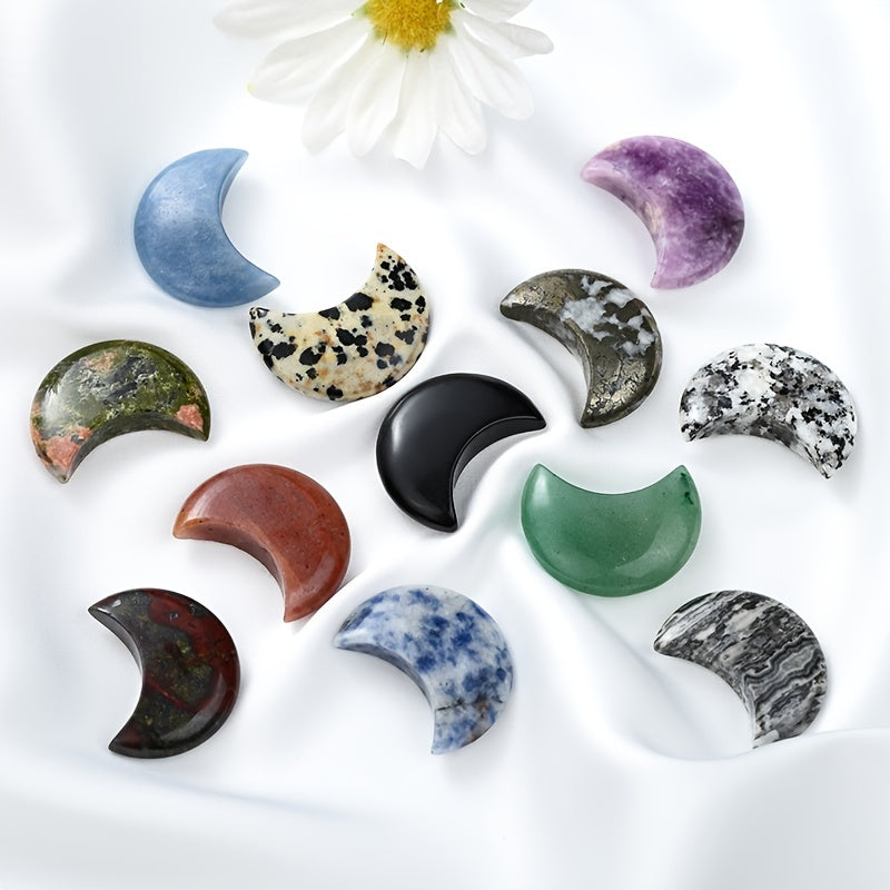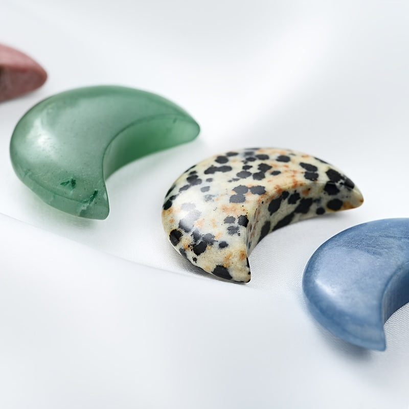 Enhance your style with this set of 4 natural carved moon crescent crystal jewelry pieces. Perfect for adding a touch of elegance to any outfit.