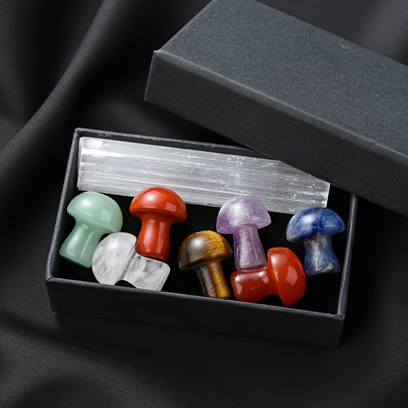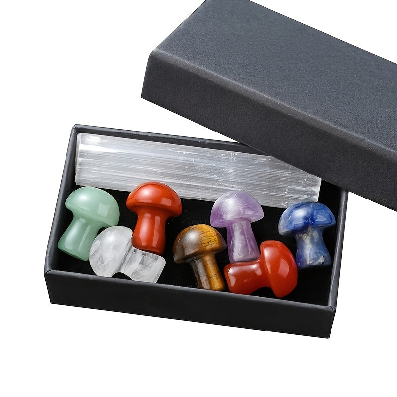 Enhance your space with this beautiful 5-inch gemstone mushroom decoration. It is crafted from healing crystals and is perfect for Reiki and Chakra healing practices.