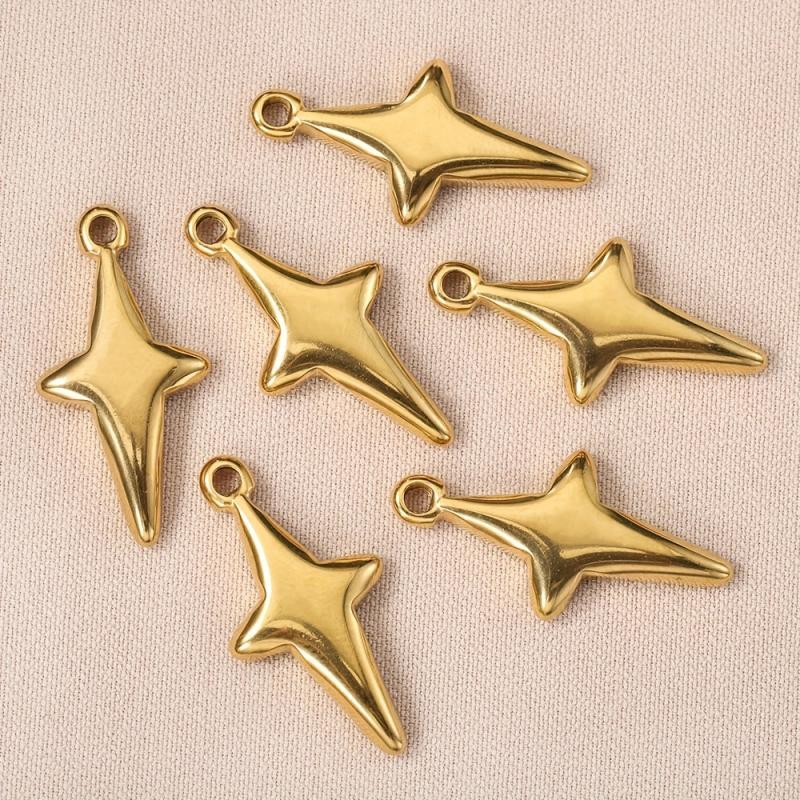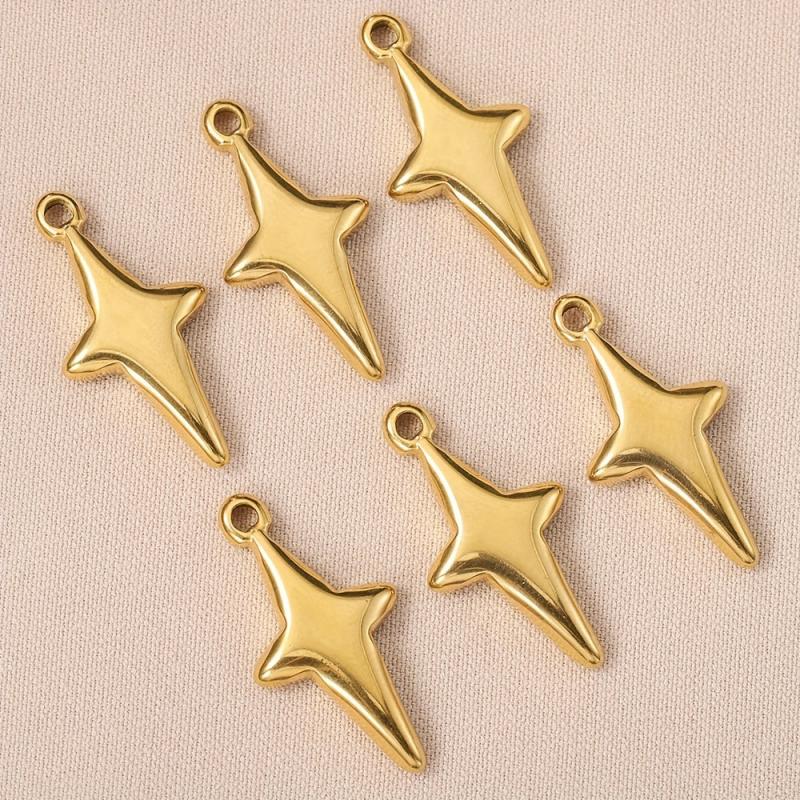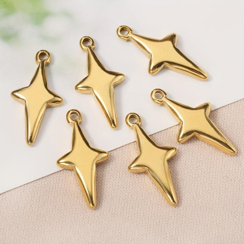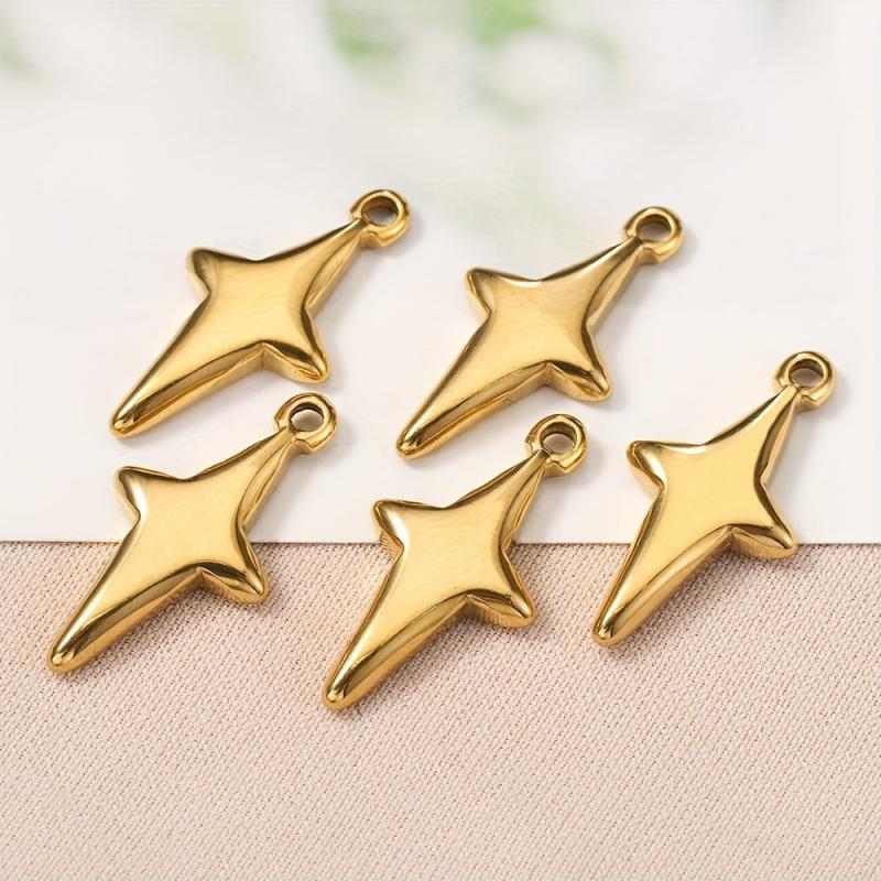 Enhance your jewelry making with these 5 golden stainless steel pendant charms. Perfect for creating personalized necklaces and bracelets.