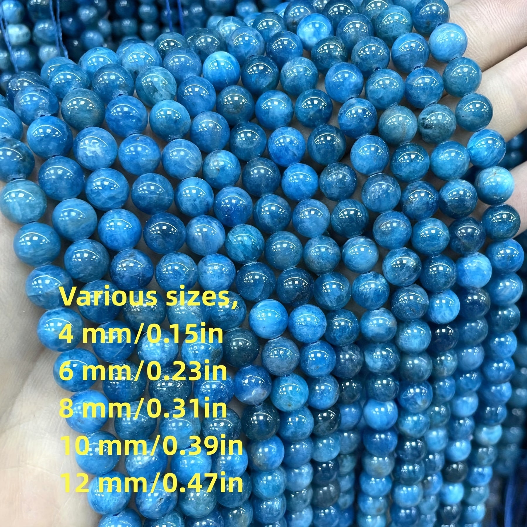 Beautiful 5 inch natural Class A loose round semi-precious stone healing smooth apatite gem bead bracelets, perfect for jewelry making.
