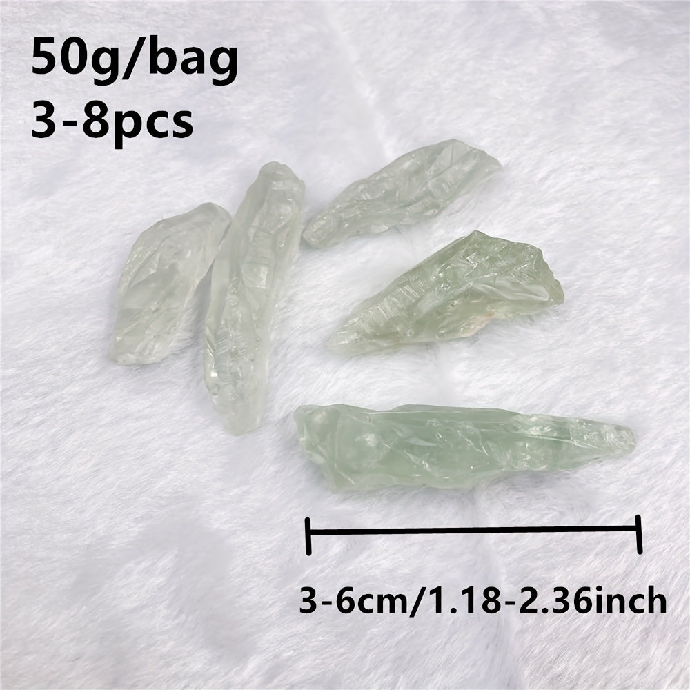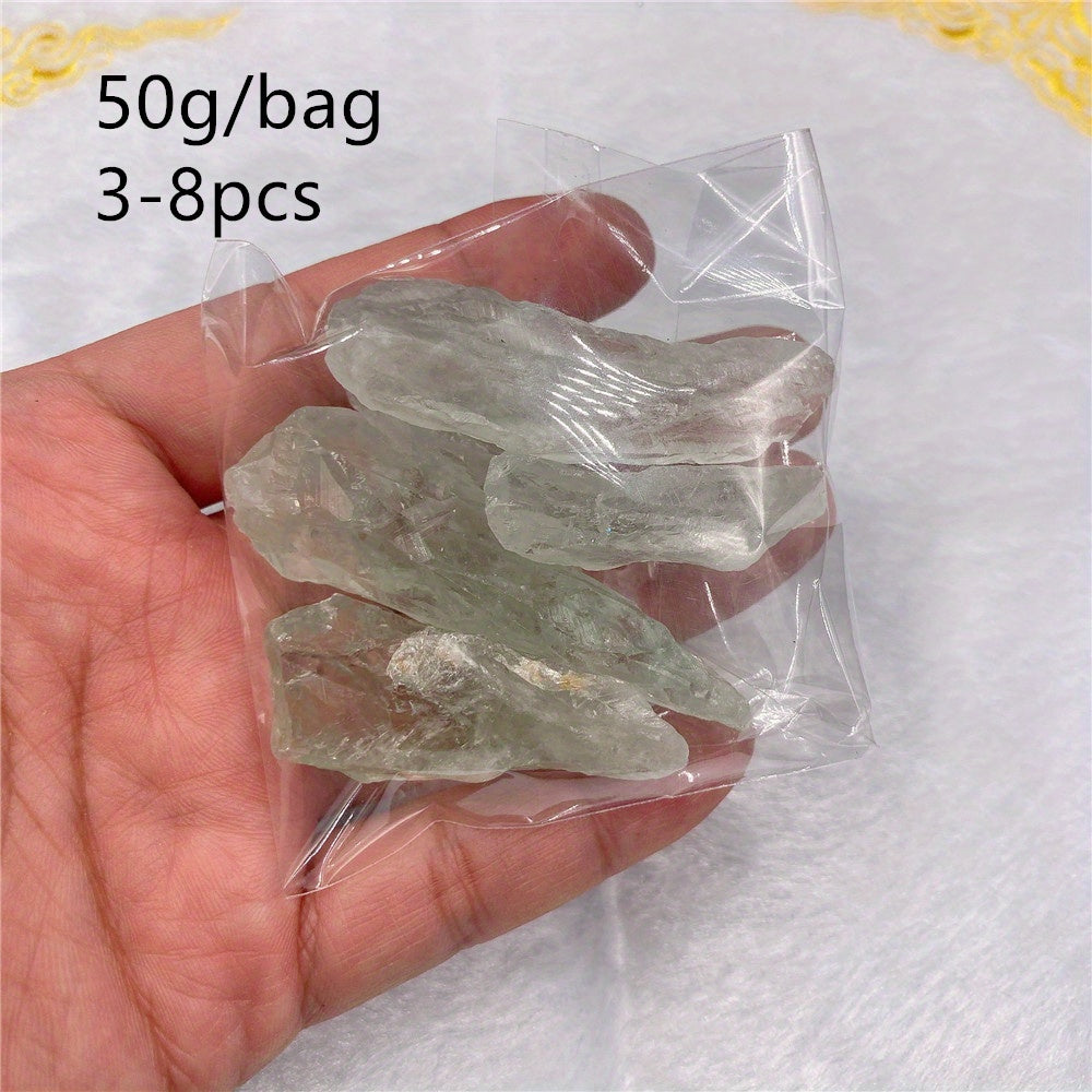 This 50g bag contains Natural Green Crystal Quartz minerals that feature an irregular shape, perfect for Reiki healing, decoration, and more.