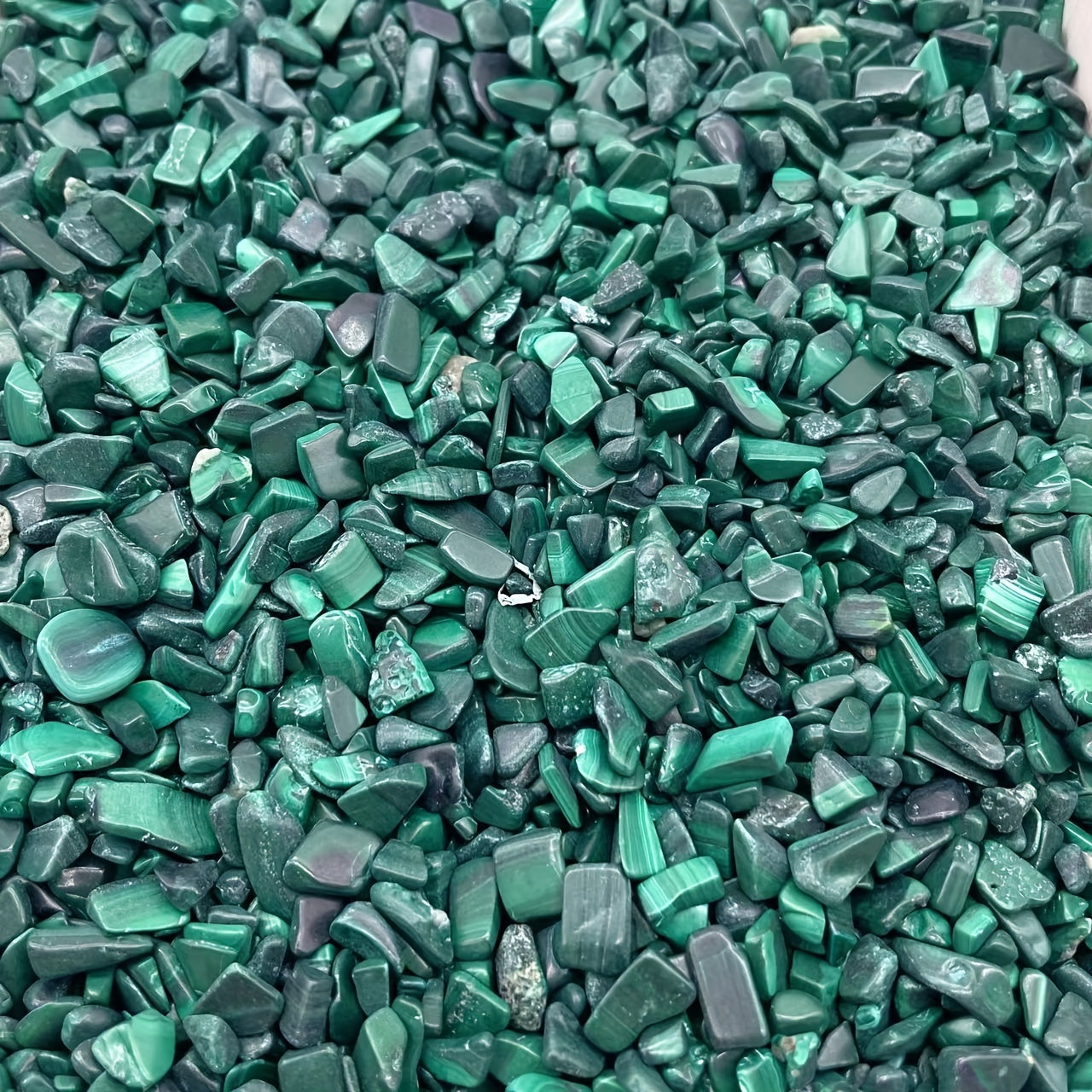 Enhance your energy with these natural Malachite crushed stones. Each bag contains irregularly shaped gemstones that are perfect for chakra balancing and healing practices.