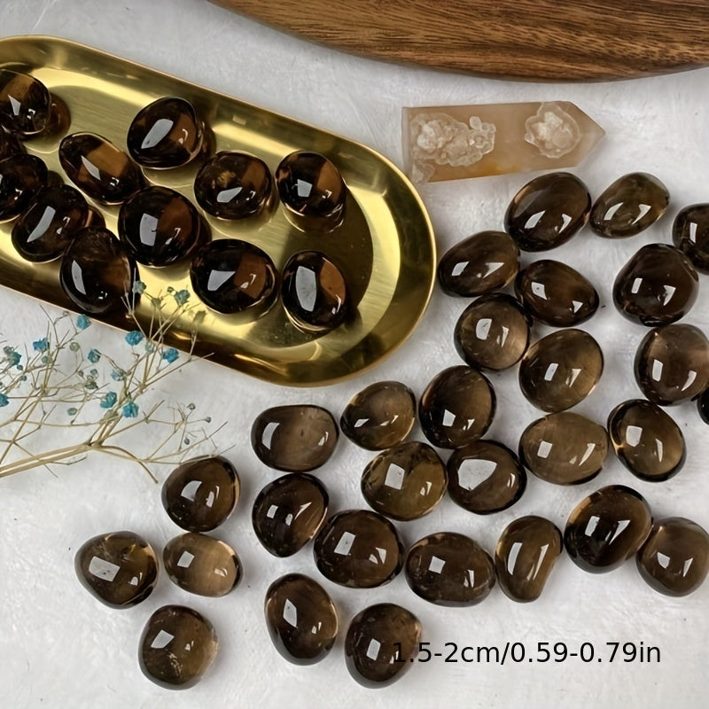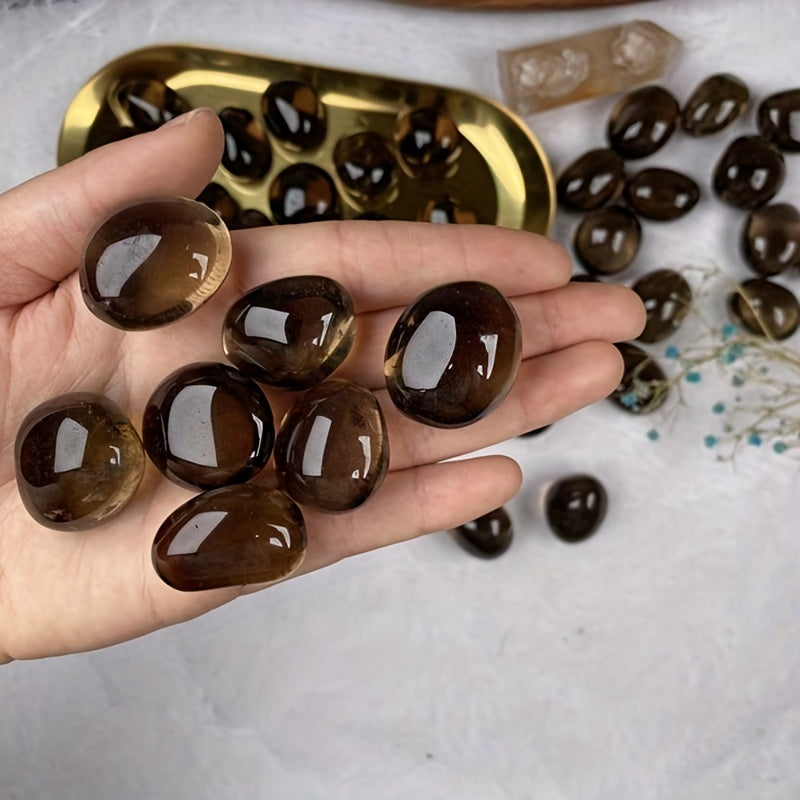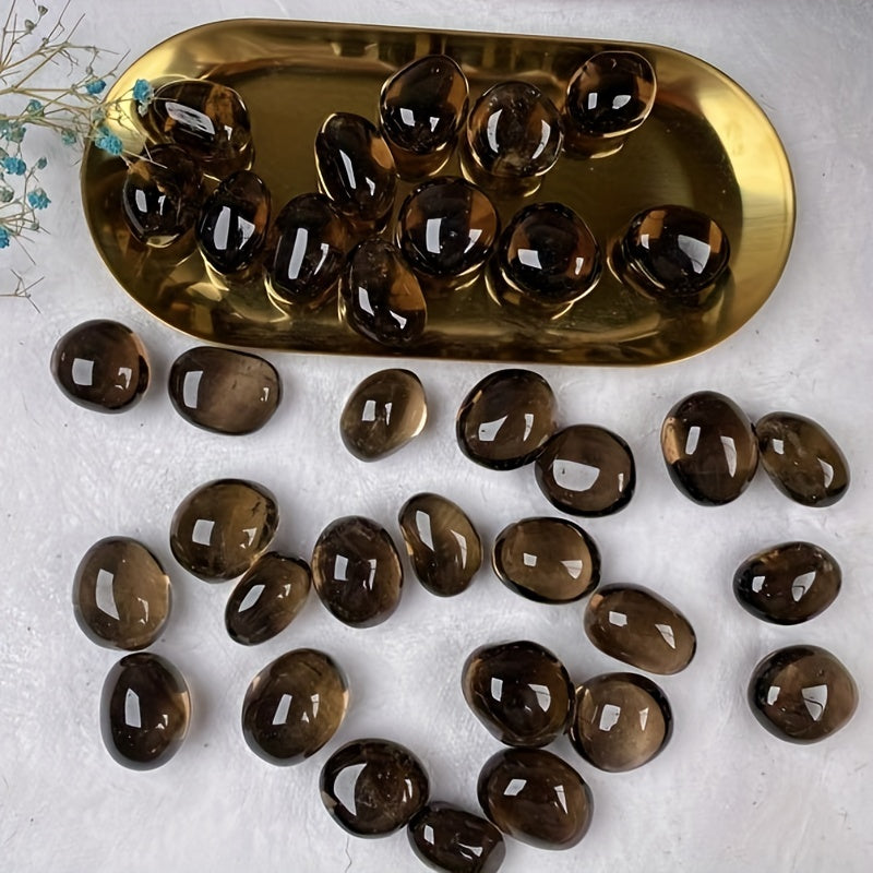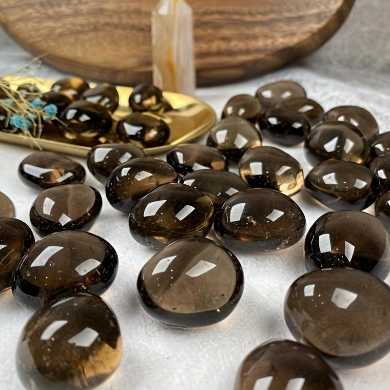 Bring positive energy to your home or garden with these beautiful smoky quartz tumbled stones. Perfect for crystal healing and decoration.