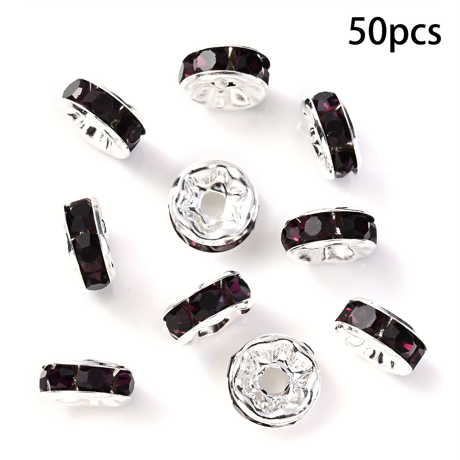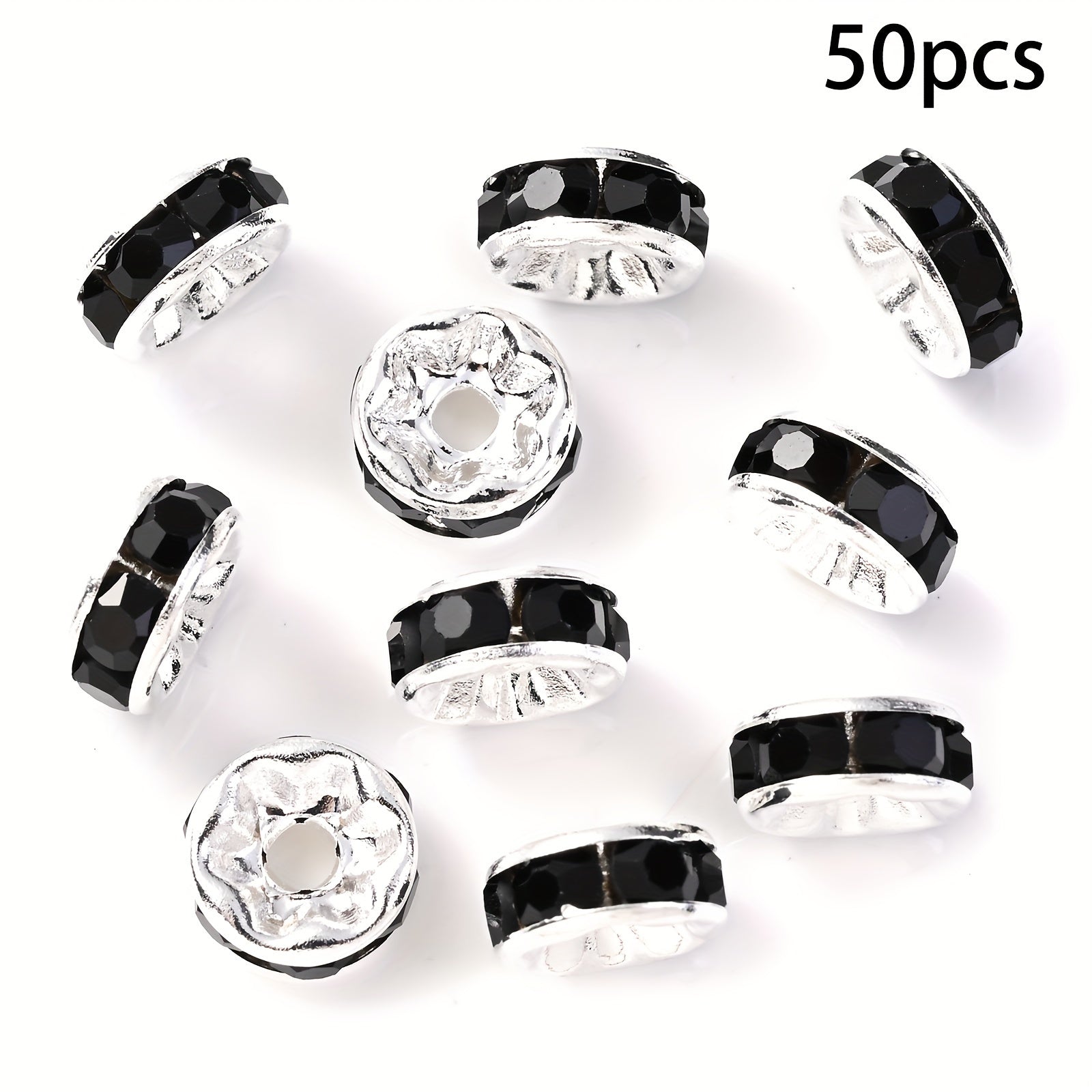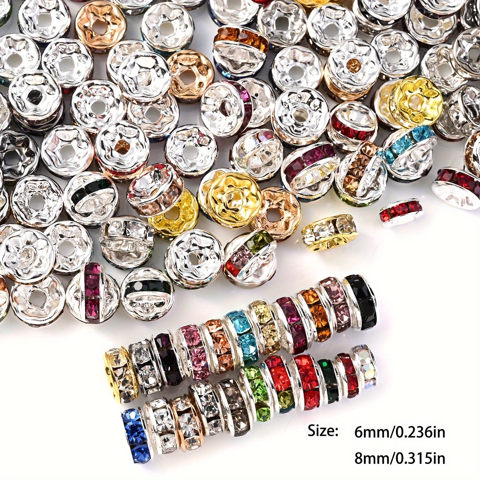 These colorful rhinestone spacer beads are perfect for jewelry making, DIY bracelet and necklace crafting. Each pack contains 50 beads in 6 and 8mm sizes.