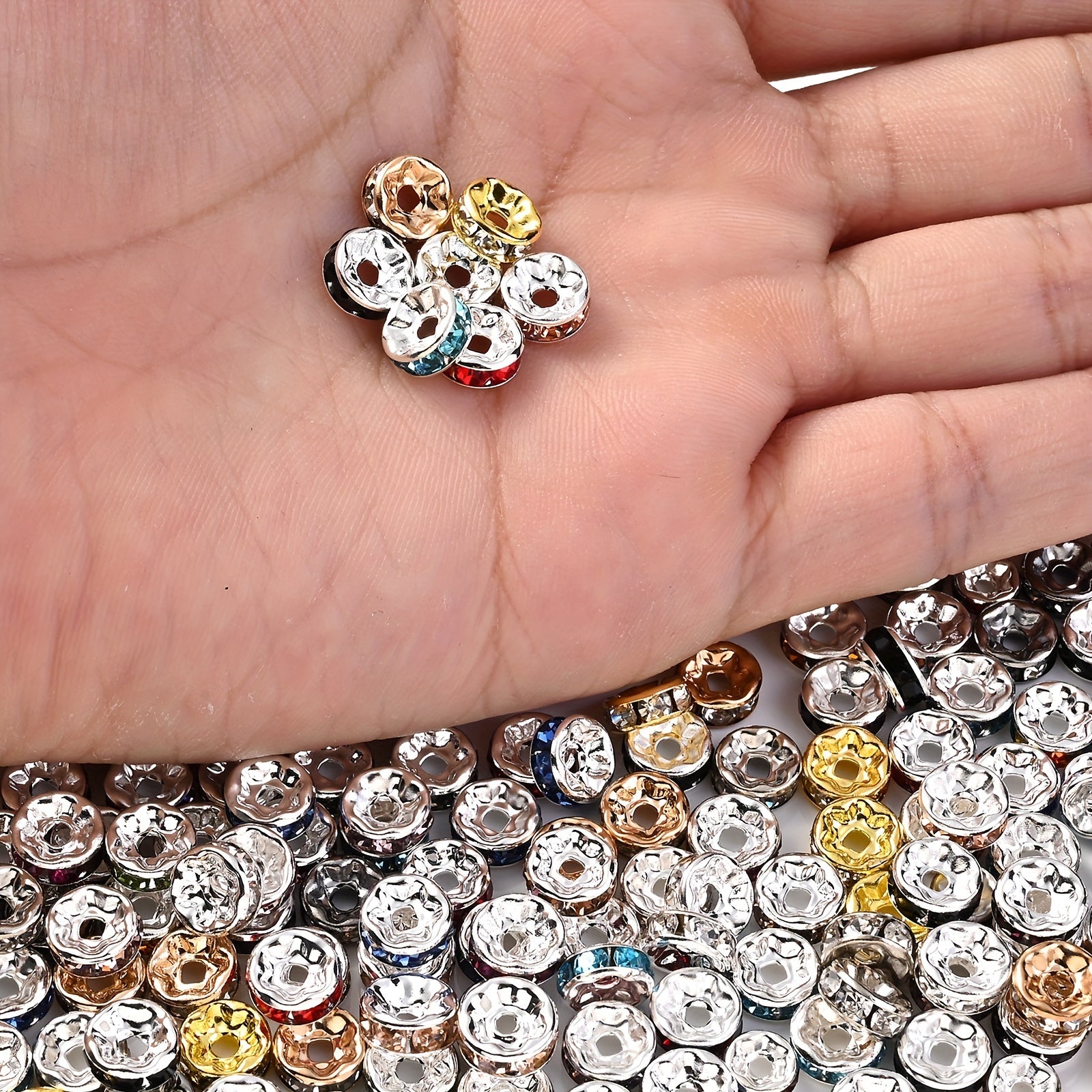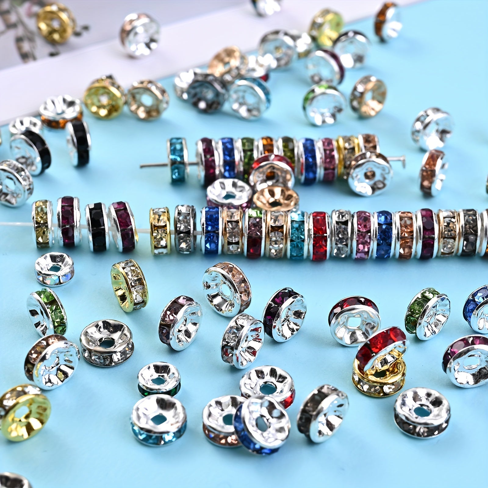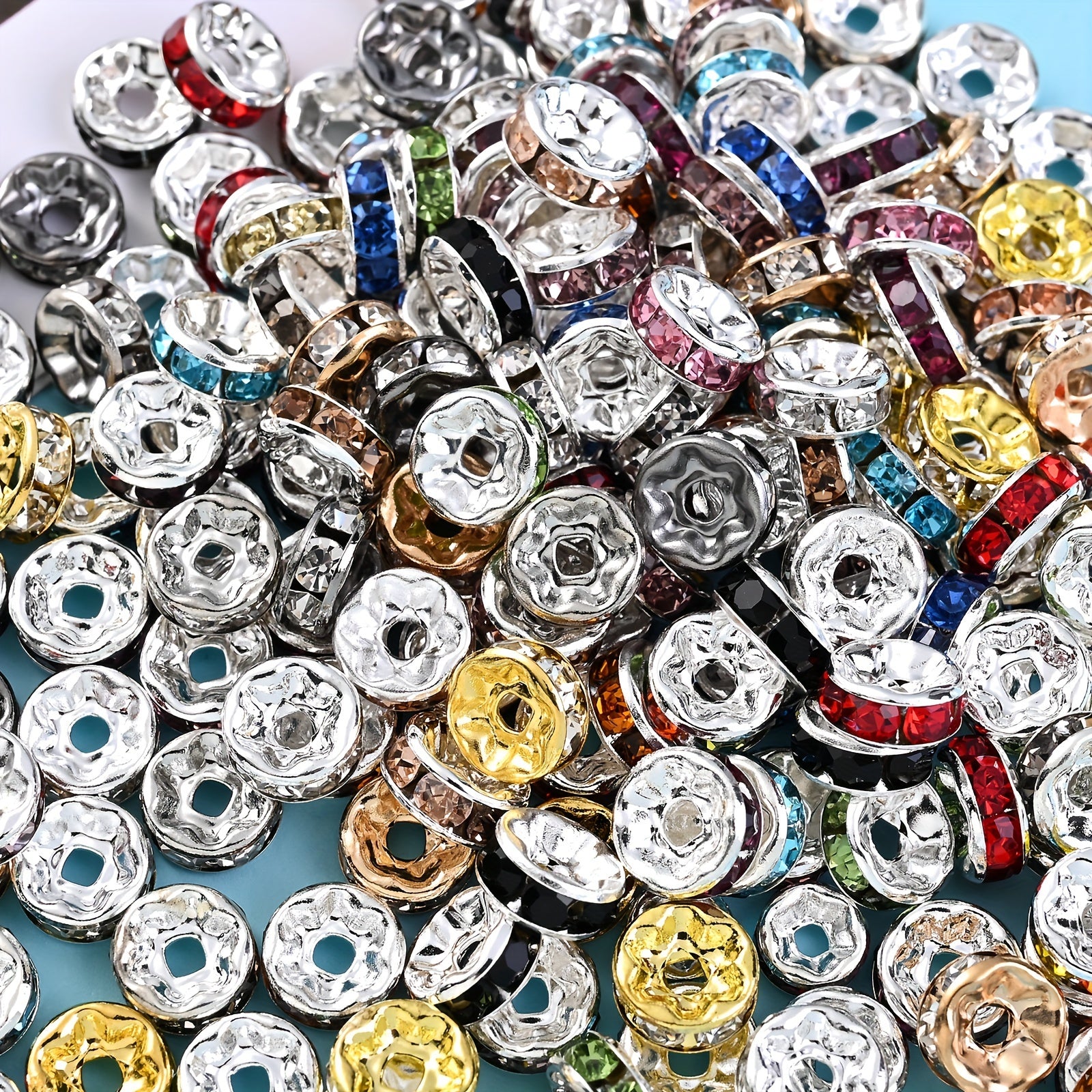 These colorful rhinestone spacer beads are perfect for jewelry making, DIY bracelet and necklace crafting. Each pack contains 50 beads in 6 and 8mm sizes.