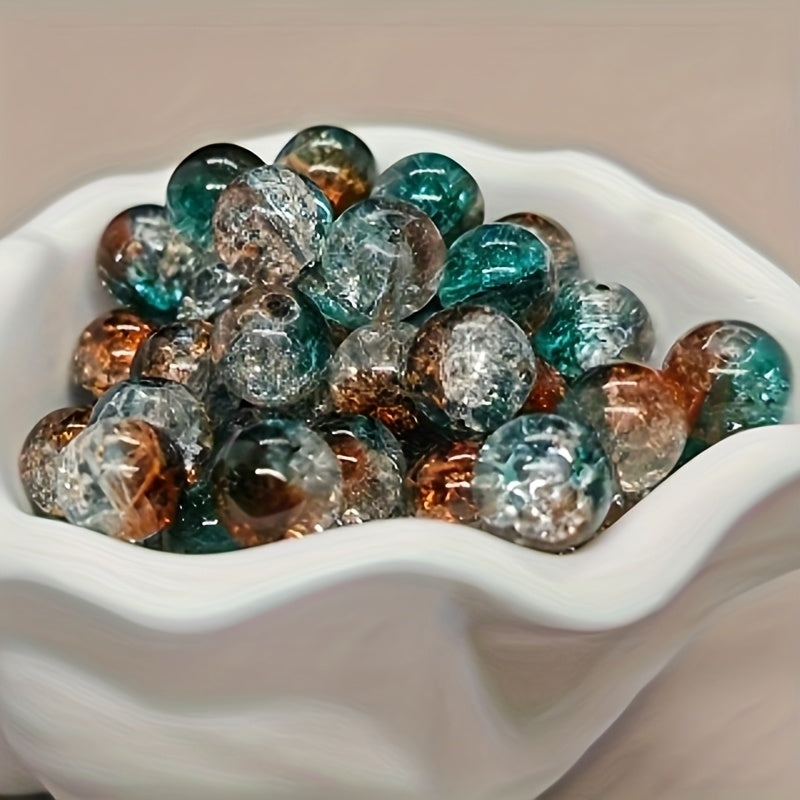 Enhance your jewelry-making projects with these 8-10mm ice crackled glass beads. Crafted using traditional Chinese craftsmanship, these graceful round beads are perfect for bracelets and more.