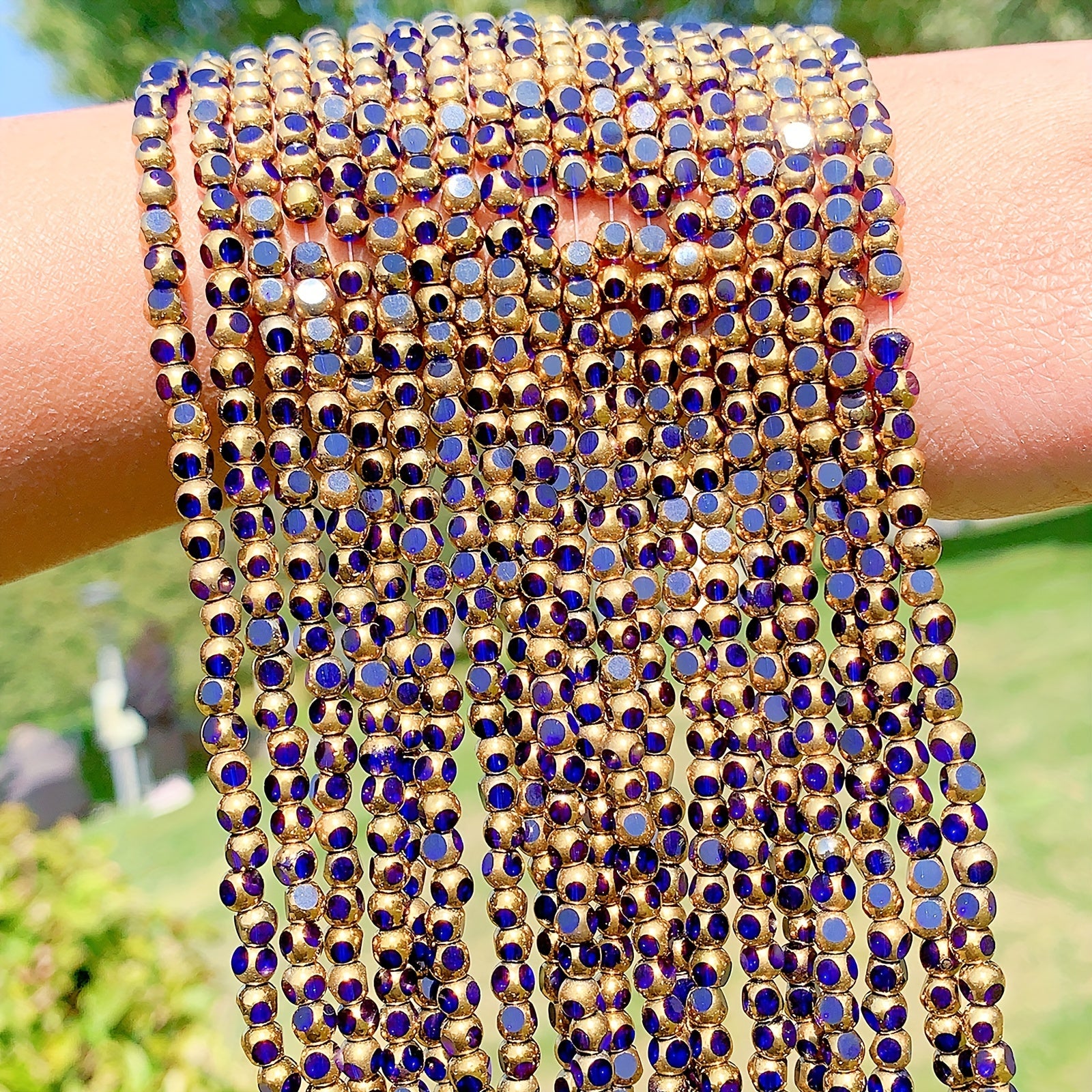 Enhance your jewelry making projects with this set of 55 golden edge crystal beads. These faceted glass beads can be used as spacer beads, perfect for creating beautiful bracelets and other accessories.