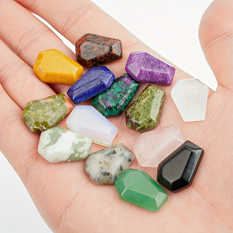 5pcs Coffin Shaped Natural Crystal Raw Stone Energy Worry Stones