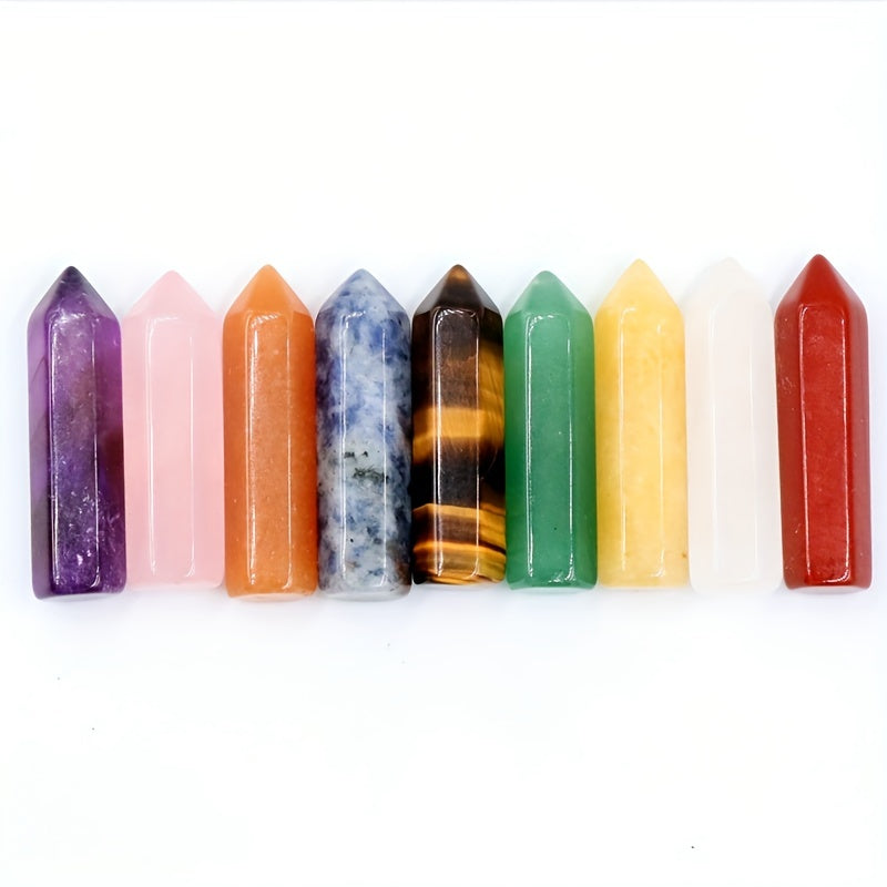 Enhance your meditation experience with these 5 mini crystal hexagonal pointed towers. Perfect for decoration or energy healing practices.