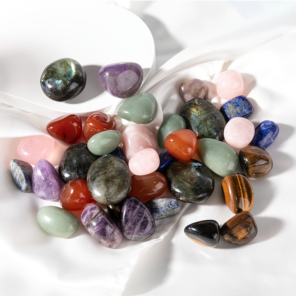 Create beautiful jewelry or home decor with this set of natural stone oval beads. Each bead is made of amethyst, tiger eye, or agates, perfect for healing and positive energy. The irregular shapes add a unique touch to your projects.