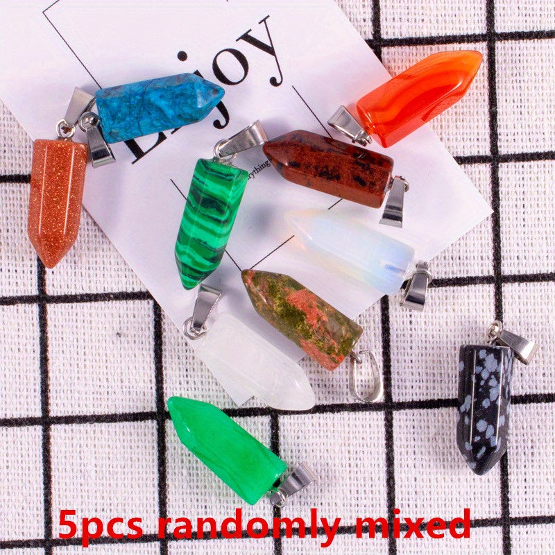 5pcs Random Bullet Gemstone Pendant Healing Pointed Pendants Quartz Charm