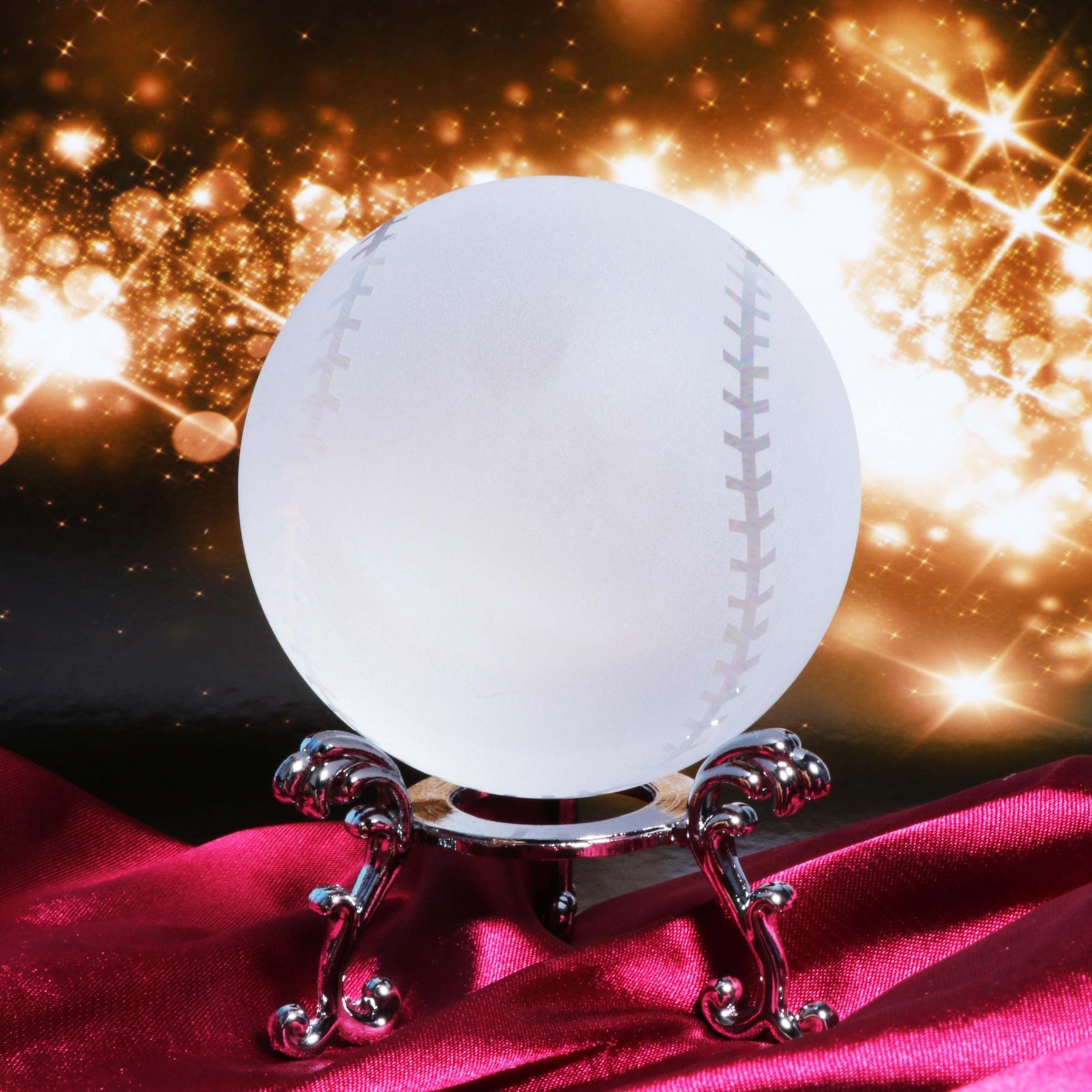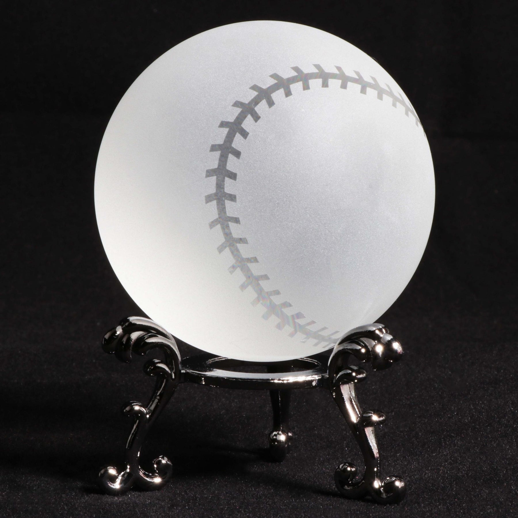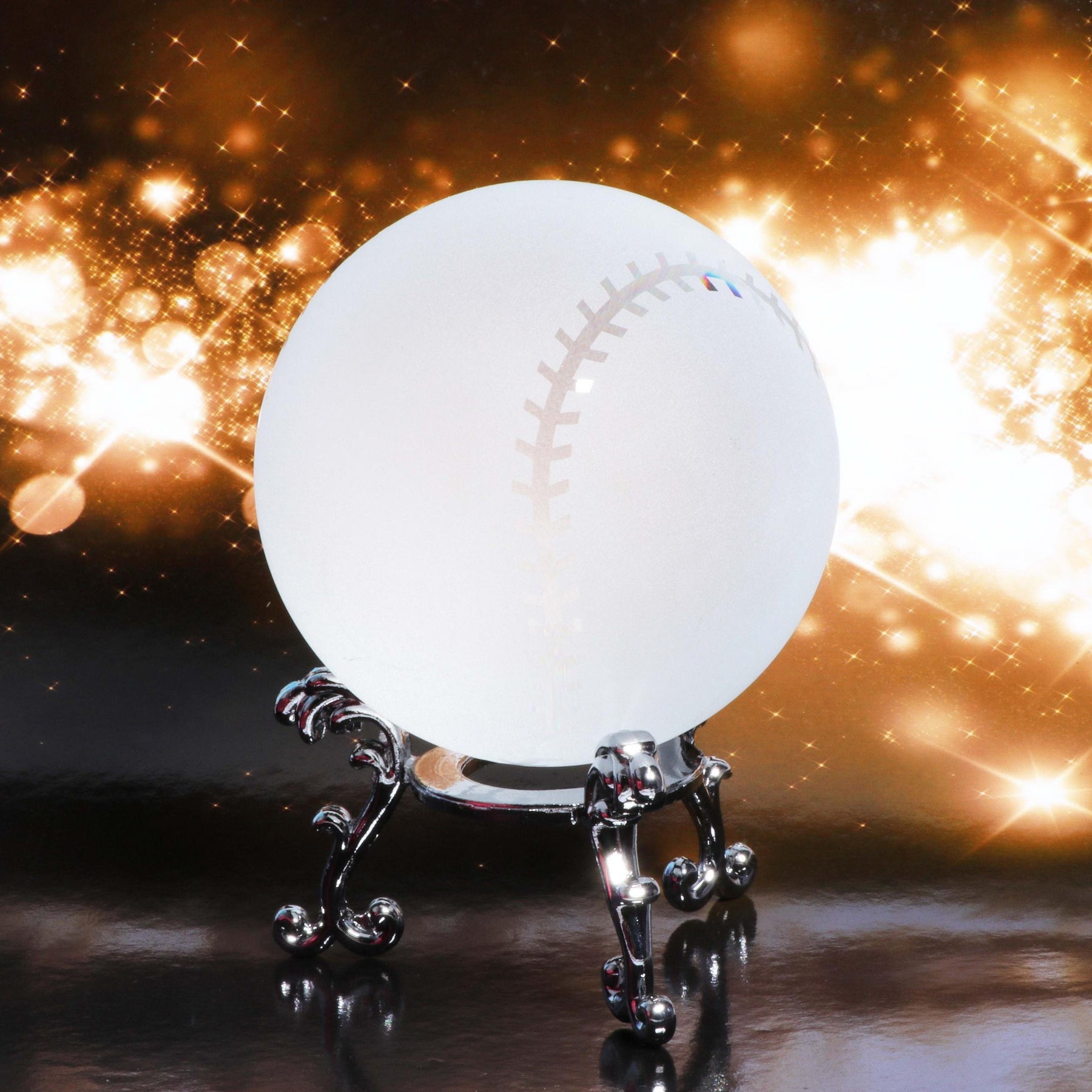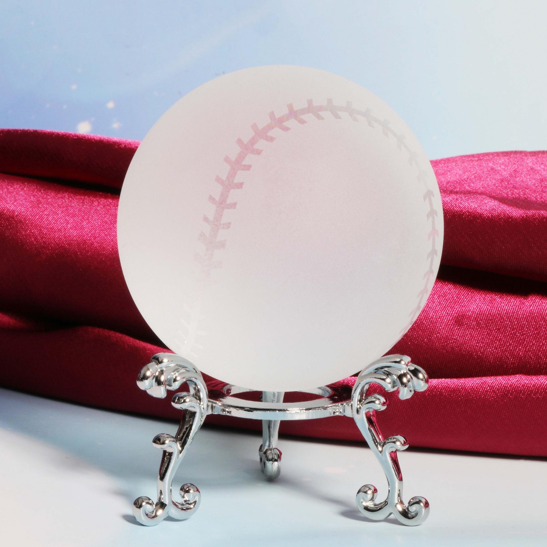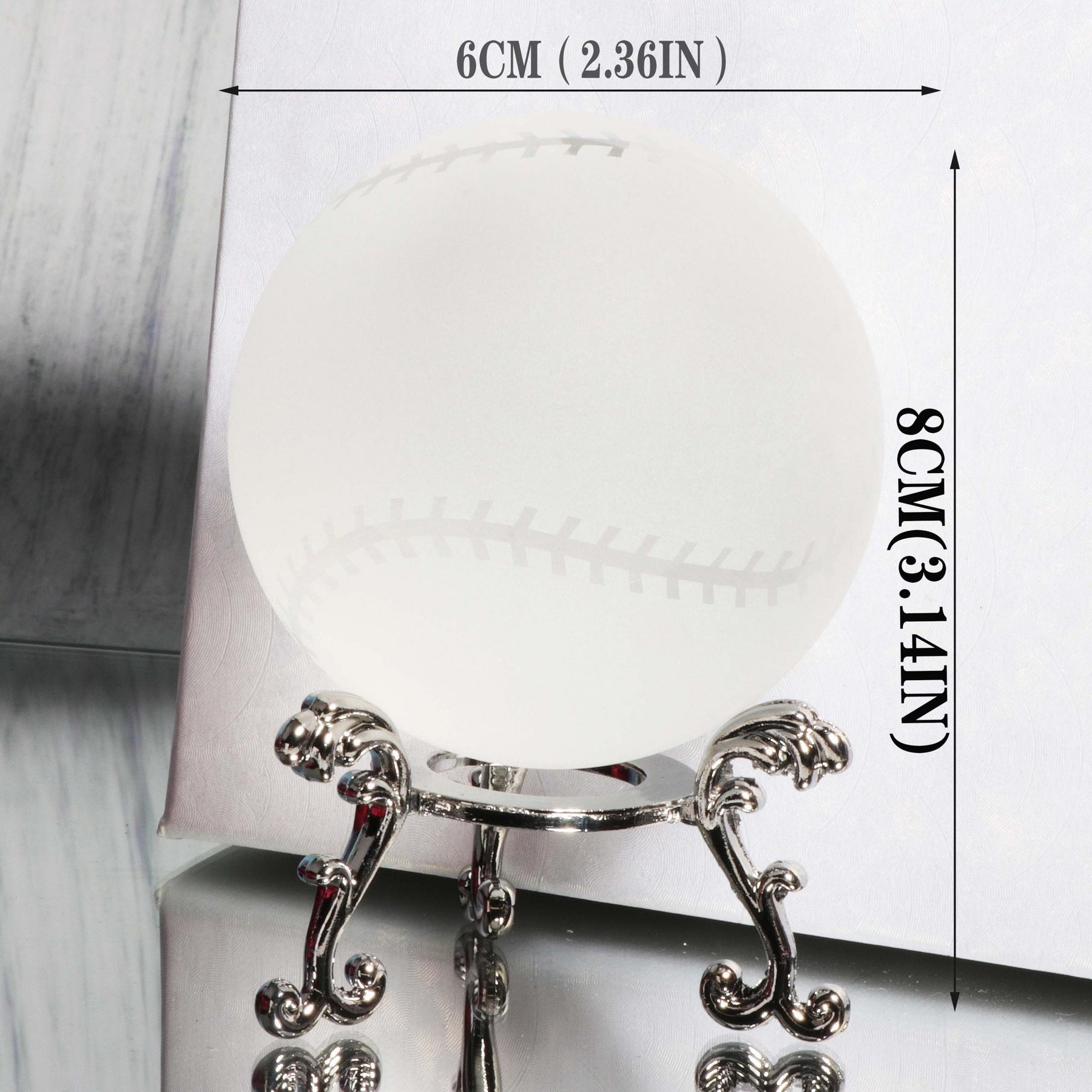 Add a touch of elegance to your home decor with this 60mm crystal baseball paperweight. Perfect as a fengshui accessory, this glass sphere on stand adds a stylish look to any room.