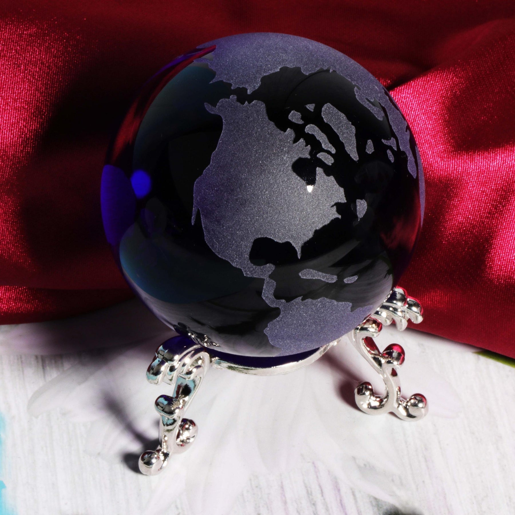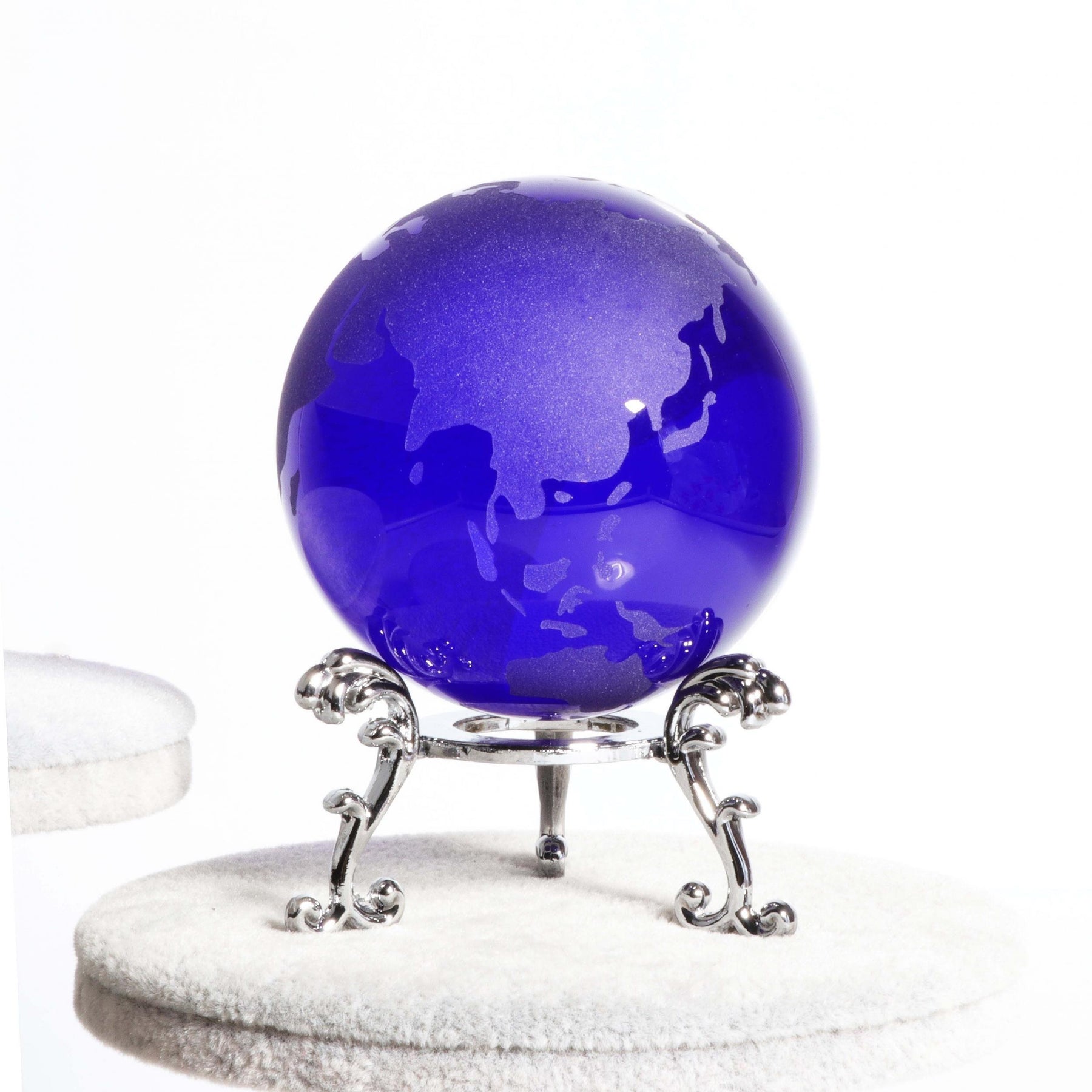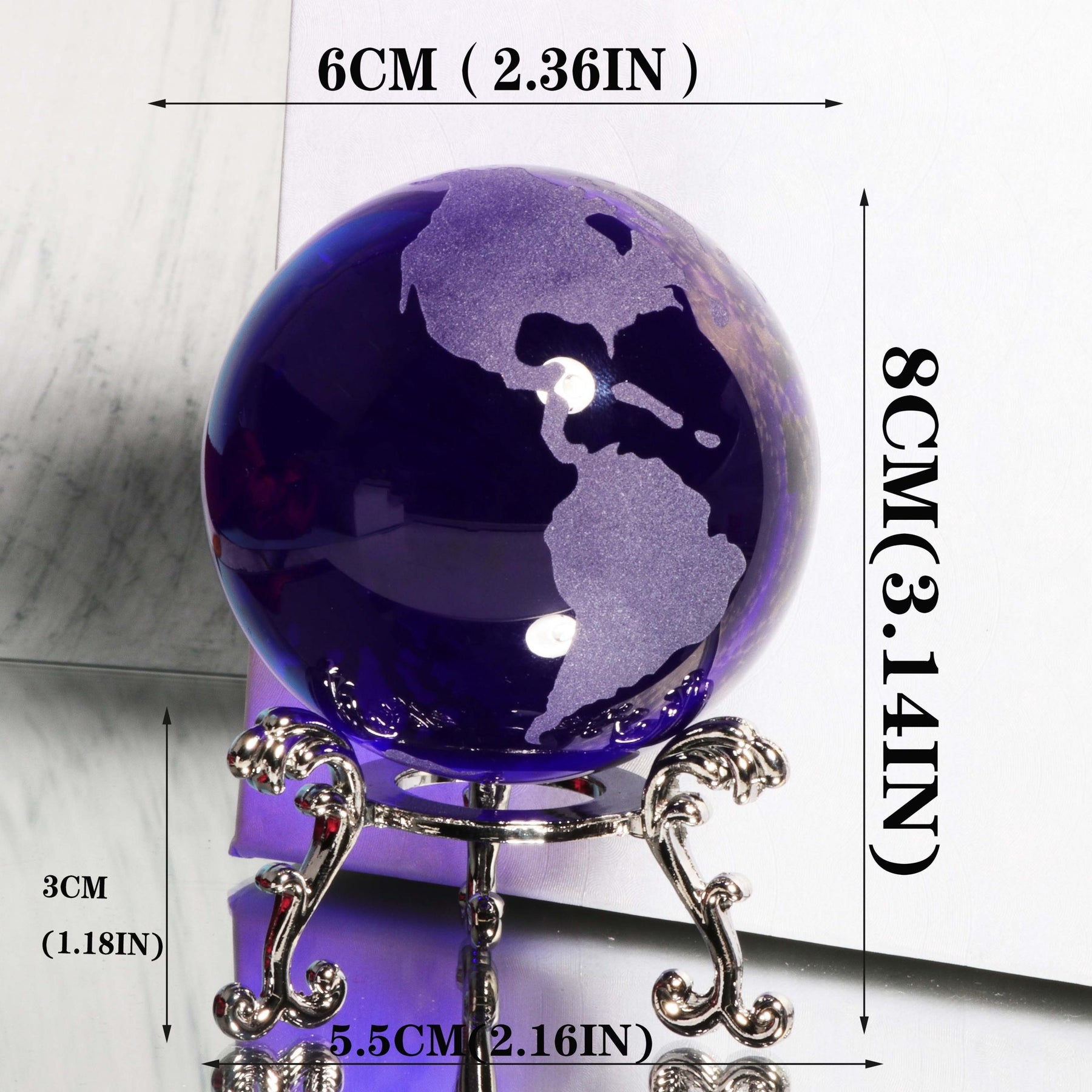 Add a touch of elegance to your home decor with this 60mm Crystal Earth Paperweight Glass Sphere. Perfect as a rockery ornament or Fengshui accessory, this crystal sphere comes with a stand for display.