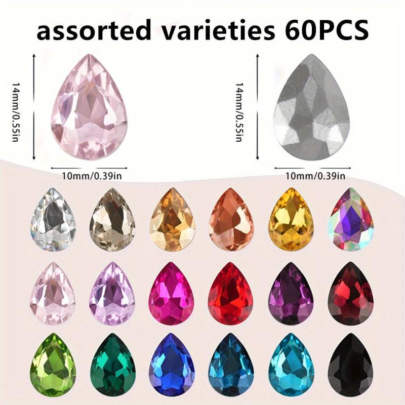 Add a touch of sparkle to your DIY projects with this set of 60 colorful acrylic teardrop crystals. Perfect for creating headdresses, clothing embellishments, and more.