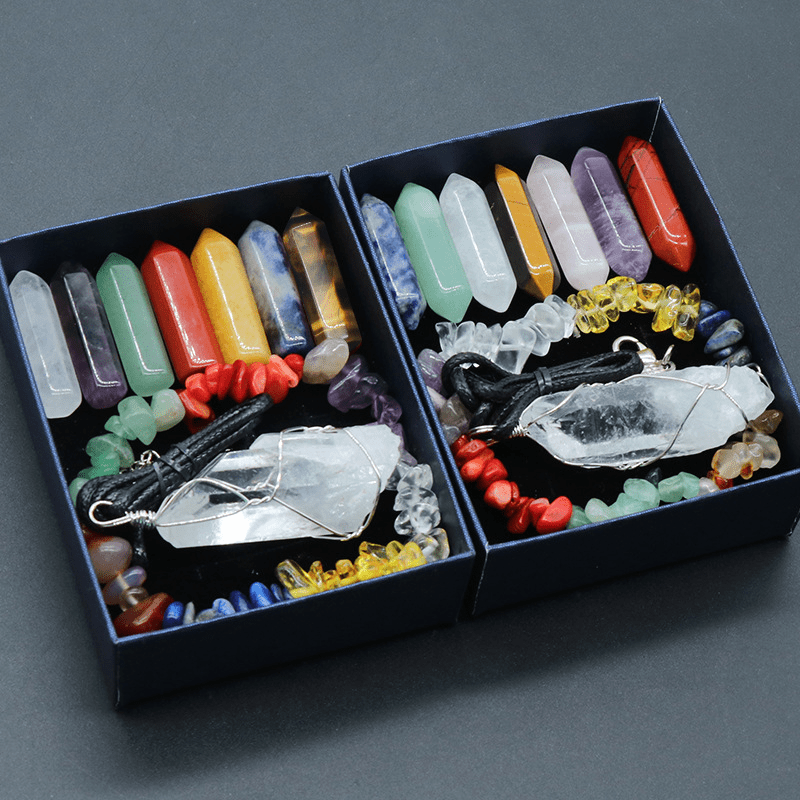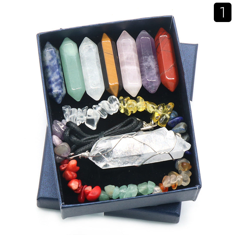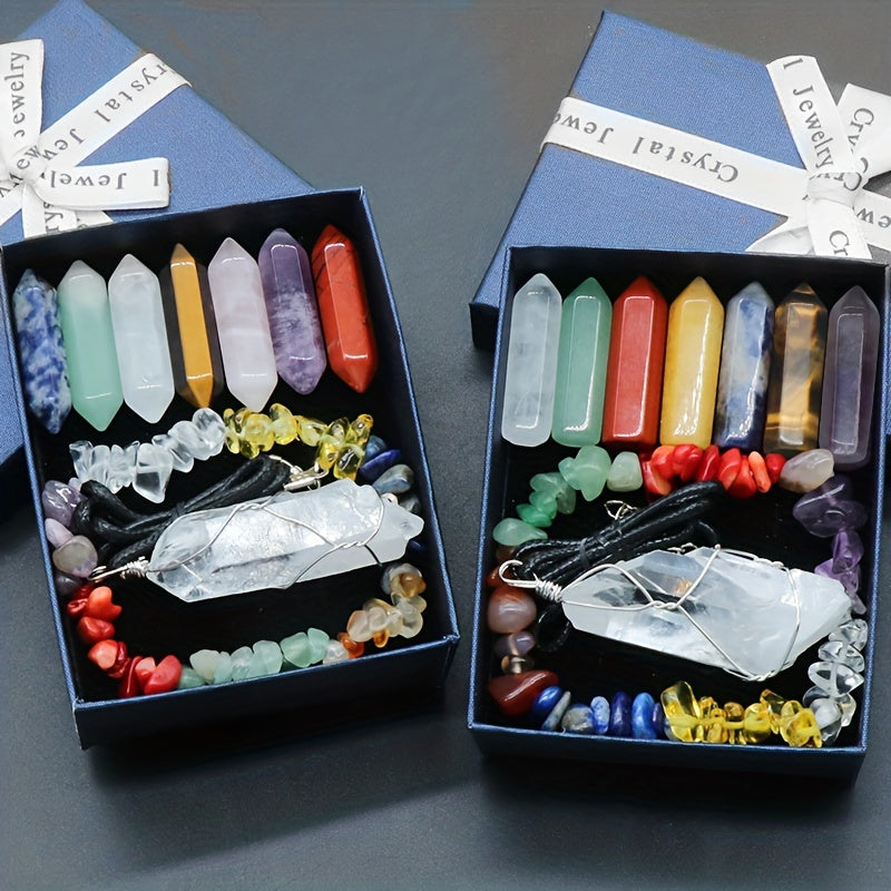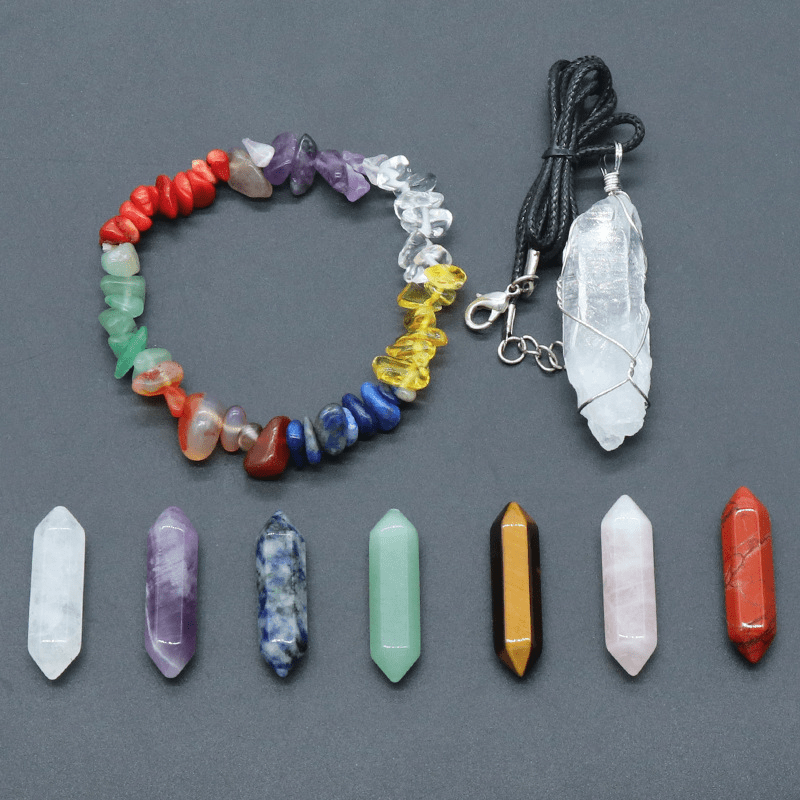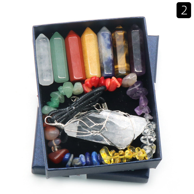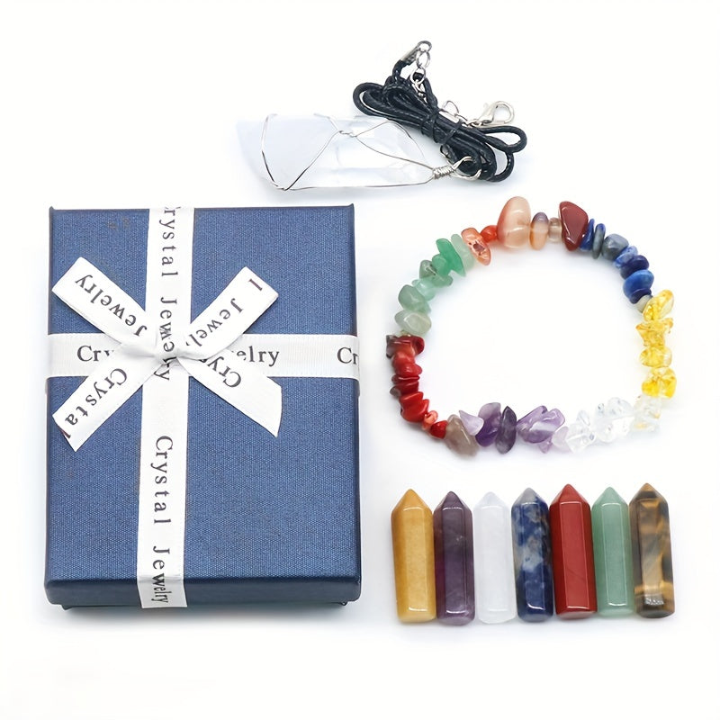 7 Chakras Crystal Healing Gemstones Set Bracelet Pendant Jewelry Energy Gems