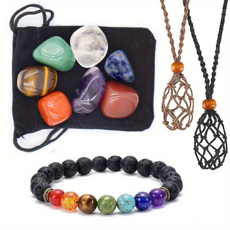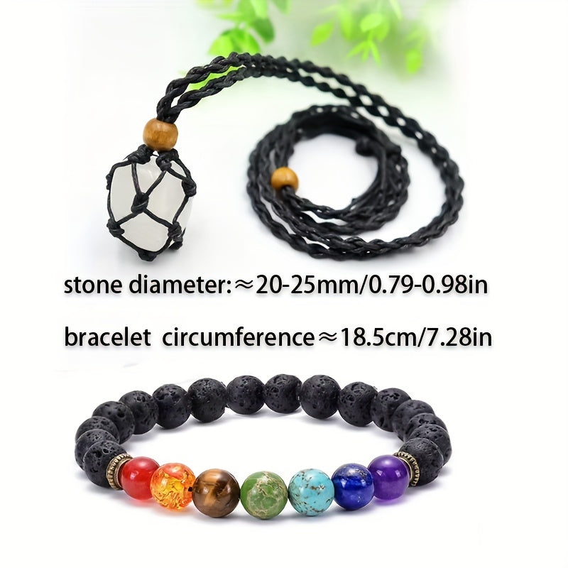 Enhance your style with this set of natural stones and volcanic stone bracelet. Perfect for DIY necklace pendants or as a unique accessory for yoga practice.