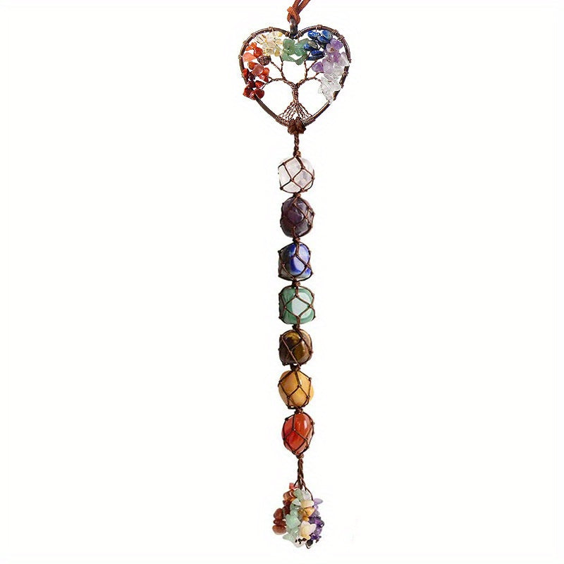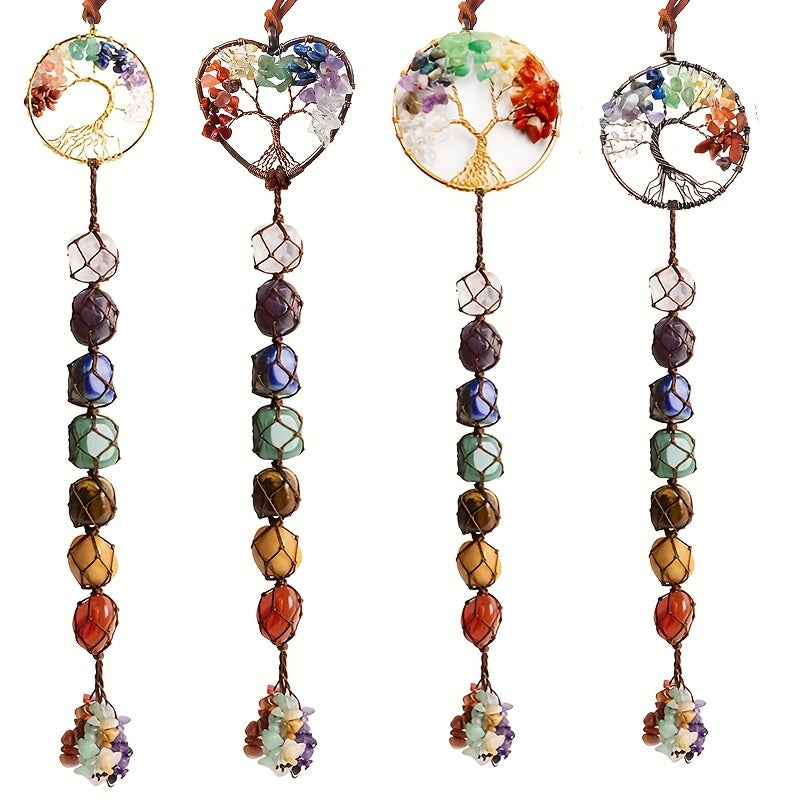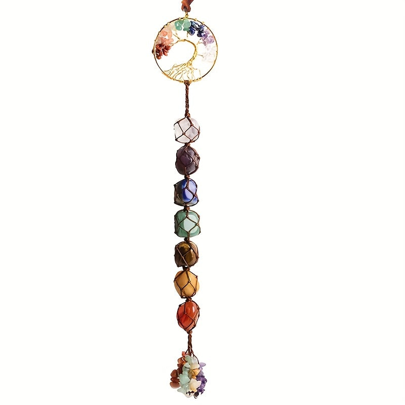 Add a touch of natural beauty to your car with this hand-woven pendant featuring seven raw crystal stones. Perfect for yoga enthusiasts and those seeking positive energy.