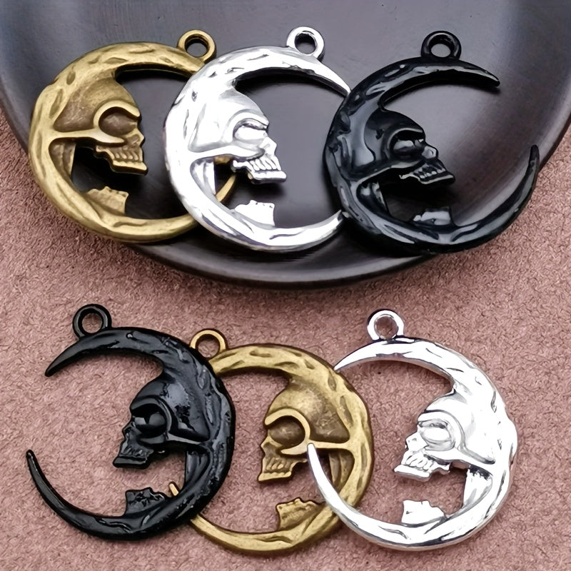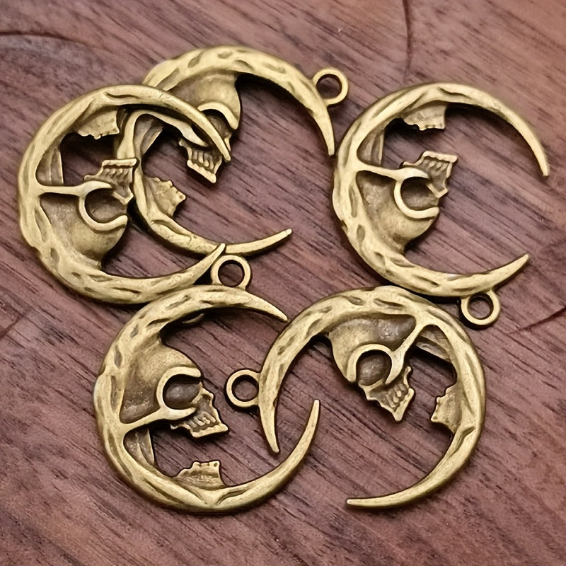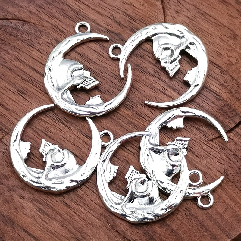 Embrace bohemian style with these vintage moon skull charm pendants for bracelets, necklaces, and earrings. Perfect for DIY jewelry projects.