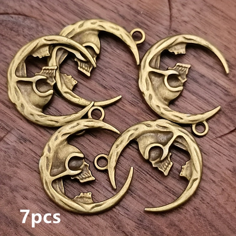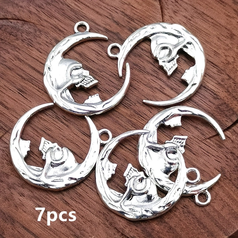7pcs Vintage Moon Skull Charm Pendants DIY Jewelry Making
