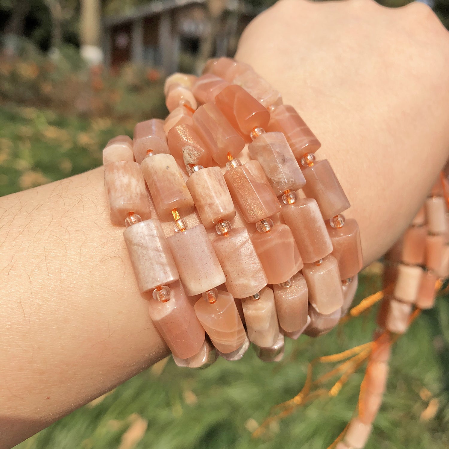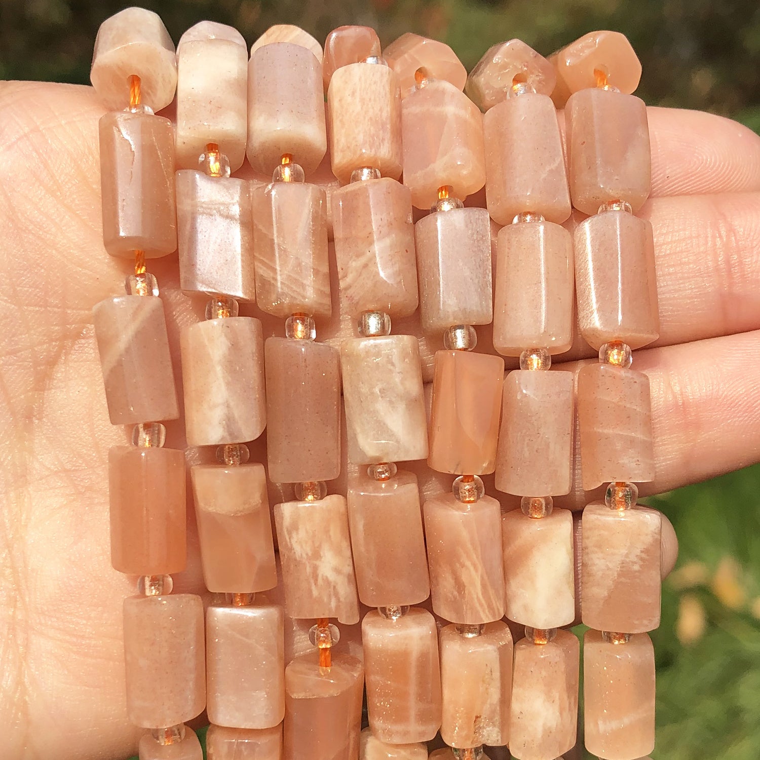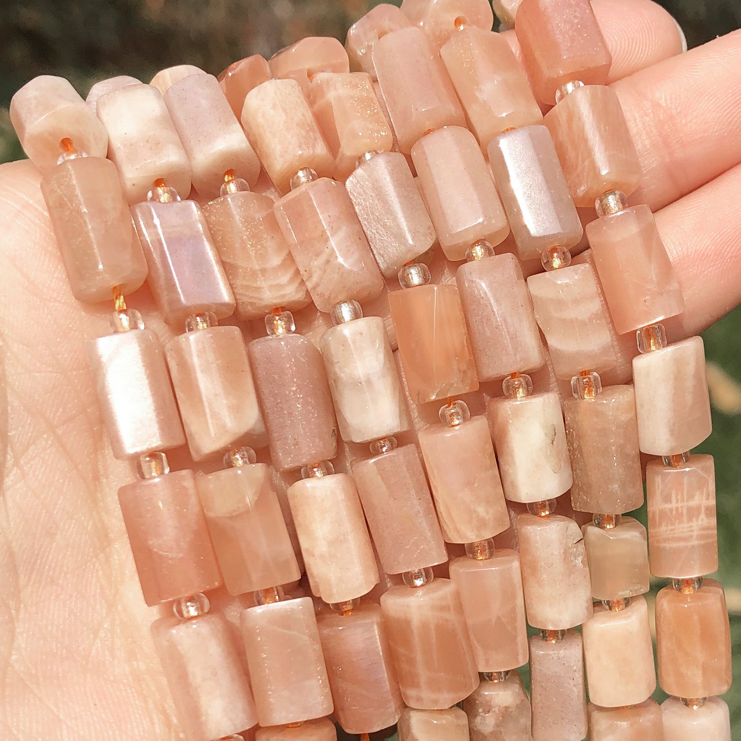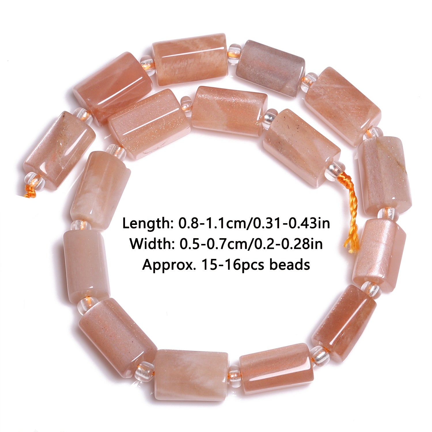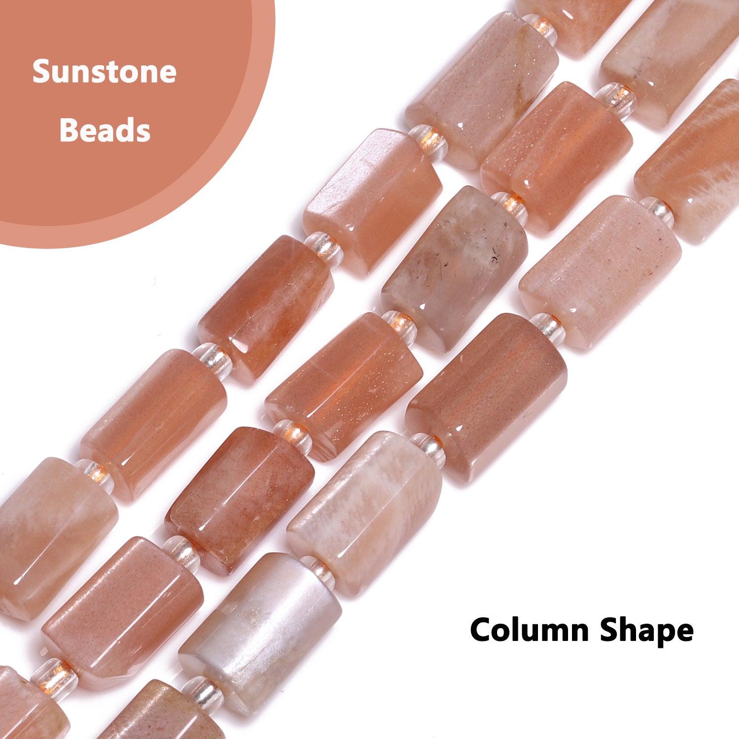 This strand of faceted cylindrical Sunstone beads is perfect for DIY jewelry making. Each bead measures 8-11mm and features a beautiful red color with intricate engravings. Ideal for crafting unique and elegant pieces.
