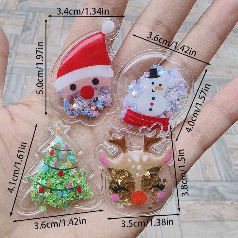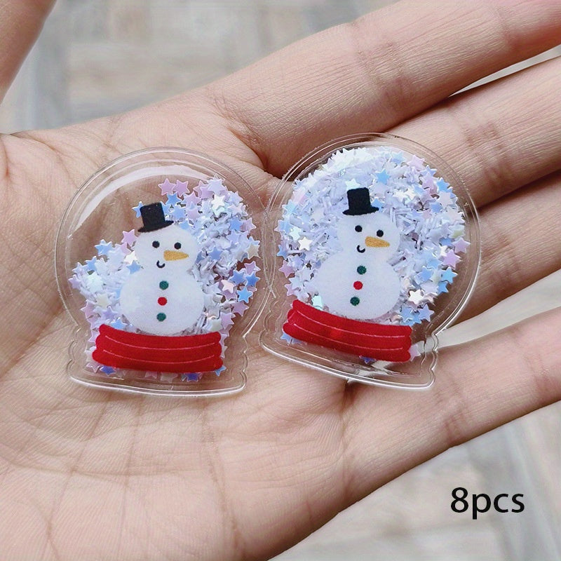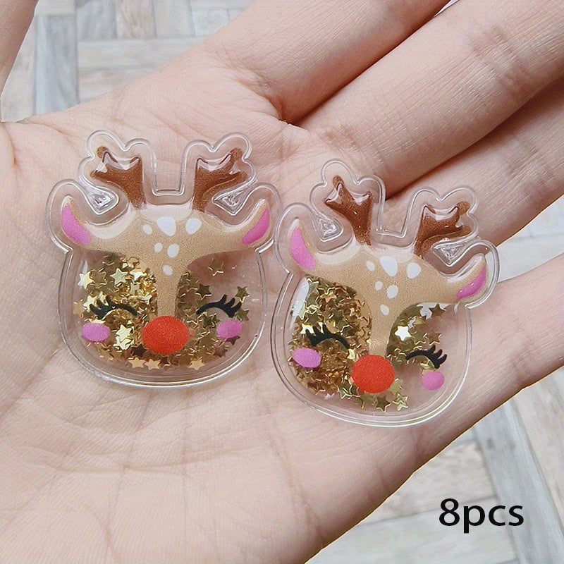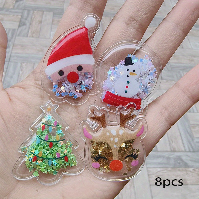 Get into the holiday spirit with this set of 8 plastic charms featuring Santa, Christmas tree, deer, and snowman designs. Perfect for adding a festive touch to hair clips, clothing, and more!