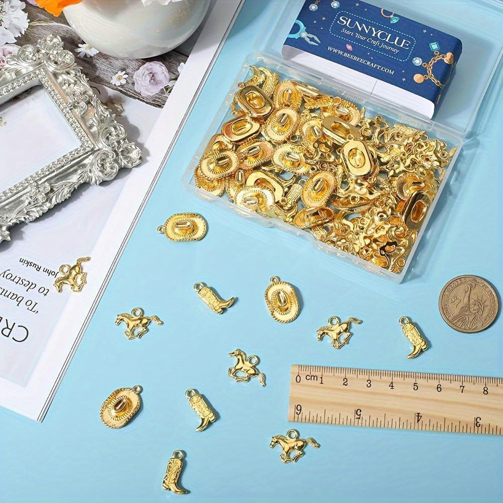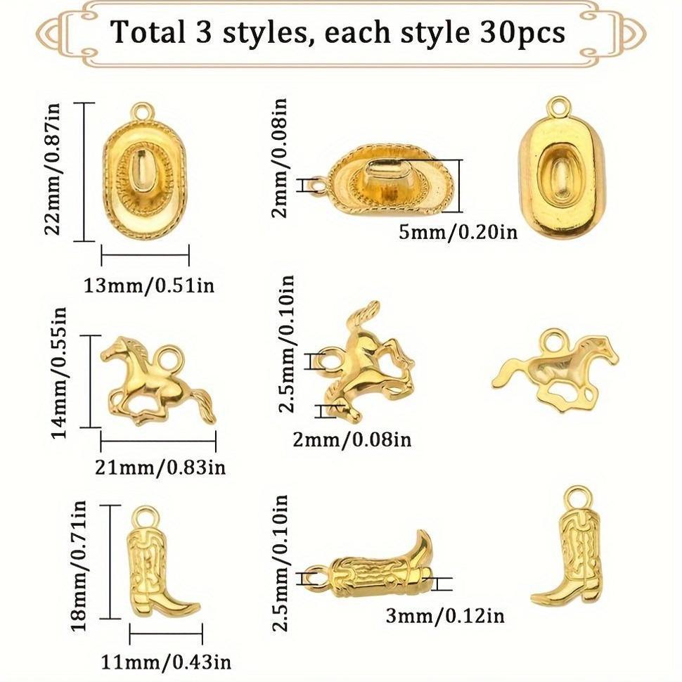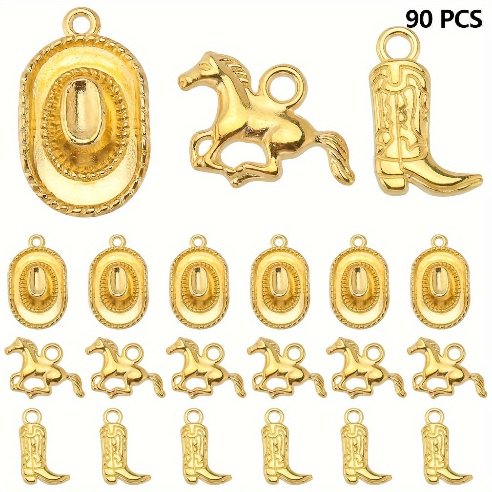 Set of 90 Western cowboy charms including 3D hat, horse, boot charms. Perfect for jewelry making, keychain crafts, and DIY projects.