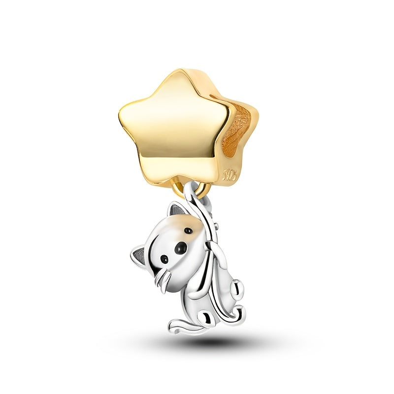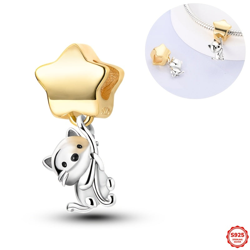 This 925 silver bracelet and necklace set features a cute cat design picking stars. Perfect for DIY jewelry making and as a lovely gift for cat lovers.