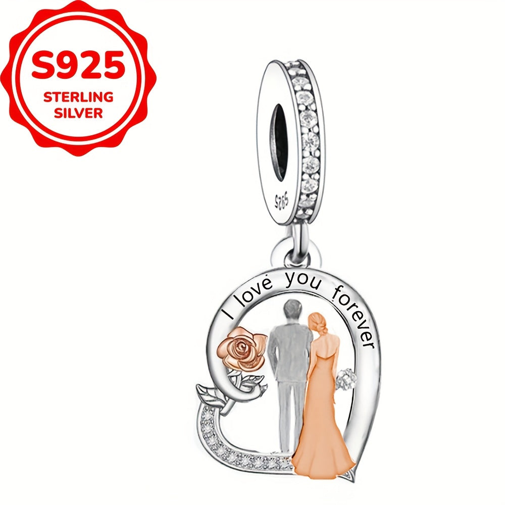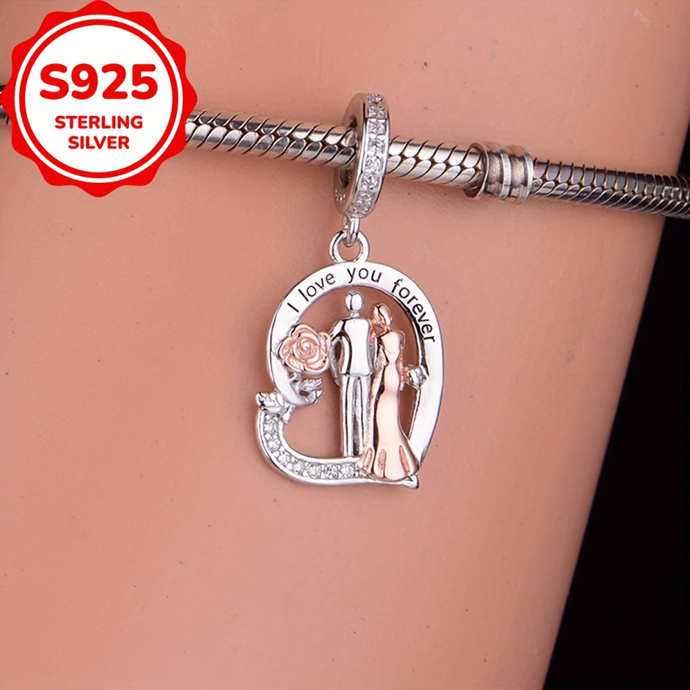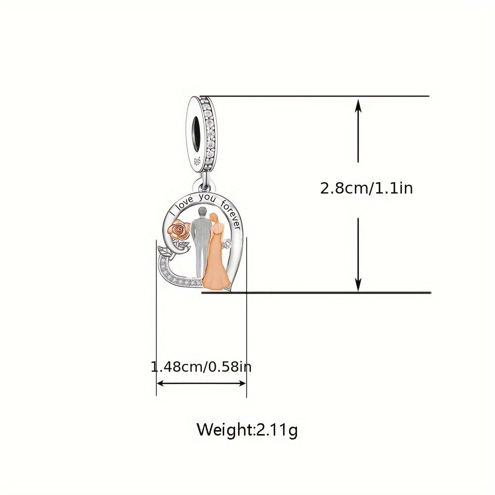 This 925 sterling silver pendant features a couple style design with heart-shaped and rose decoration charms, perfect for DIY jewelry making. Ideal for birthdays or holidays.