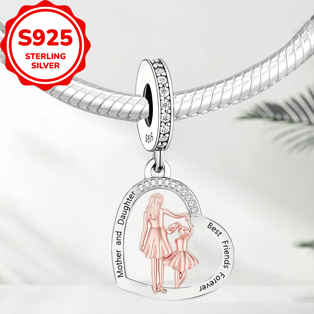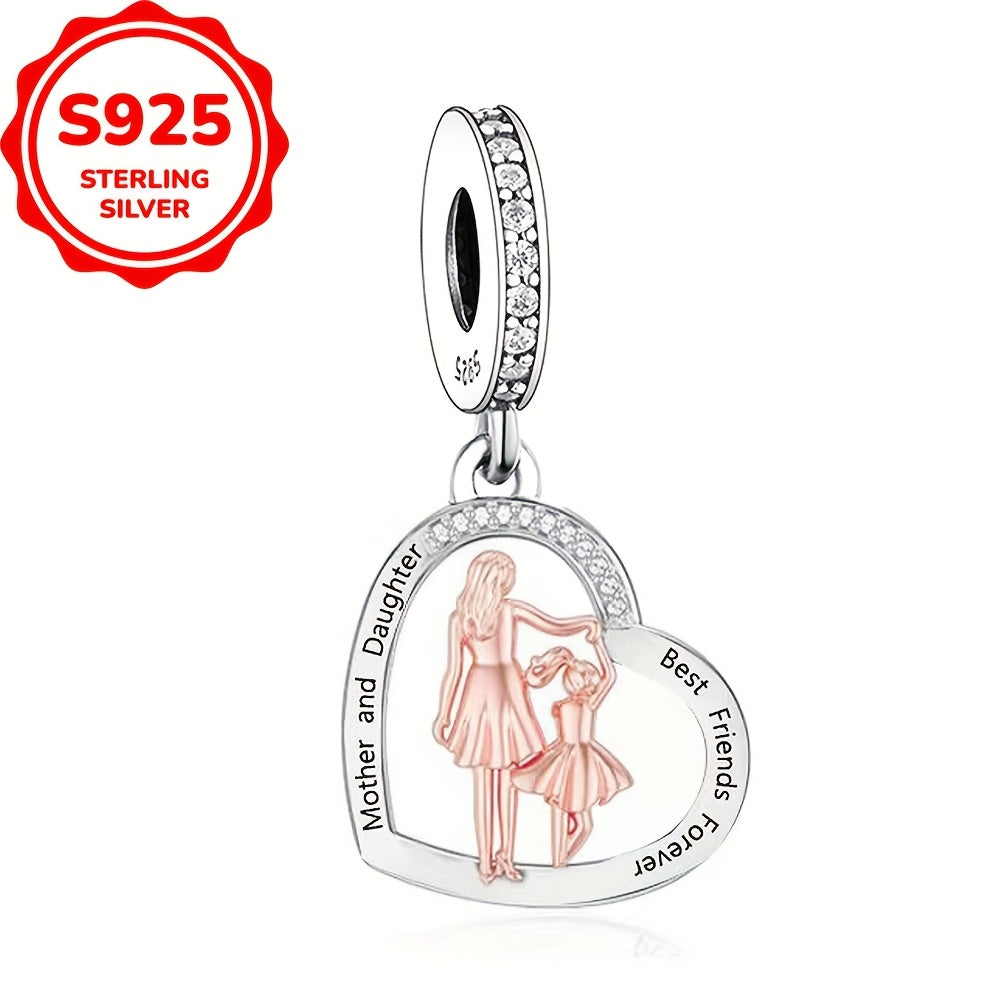 This 925 sterling silver pendant features a mother and daughter dancing together, symbolizing love and connection. Perfect for creating bracelets or necklaces as a meaningful gift for Mother's Day or birthdays.