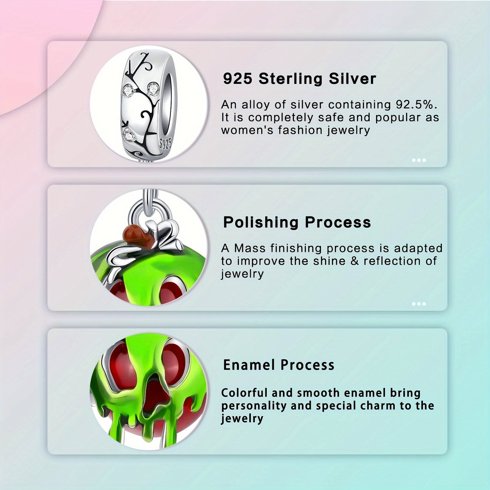 This 925 silver poison apple pendant features green enamel, making it a unique and eye-catching accessory. Perfect for Christmas and Halloween gifts.