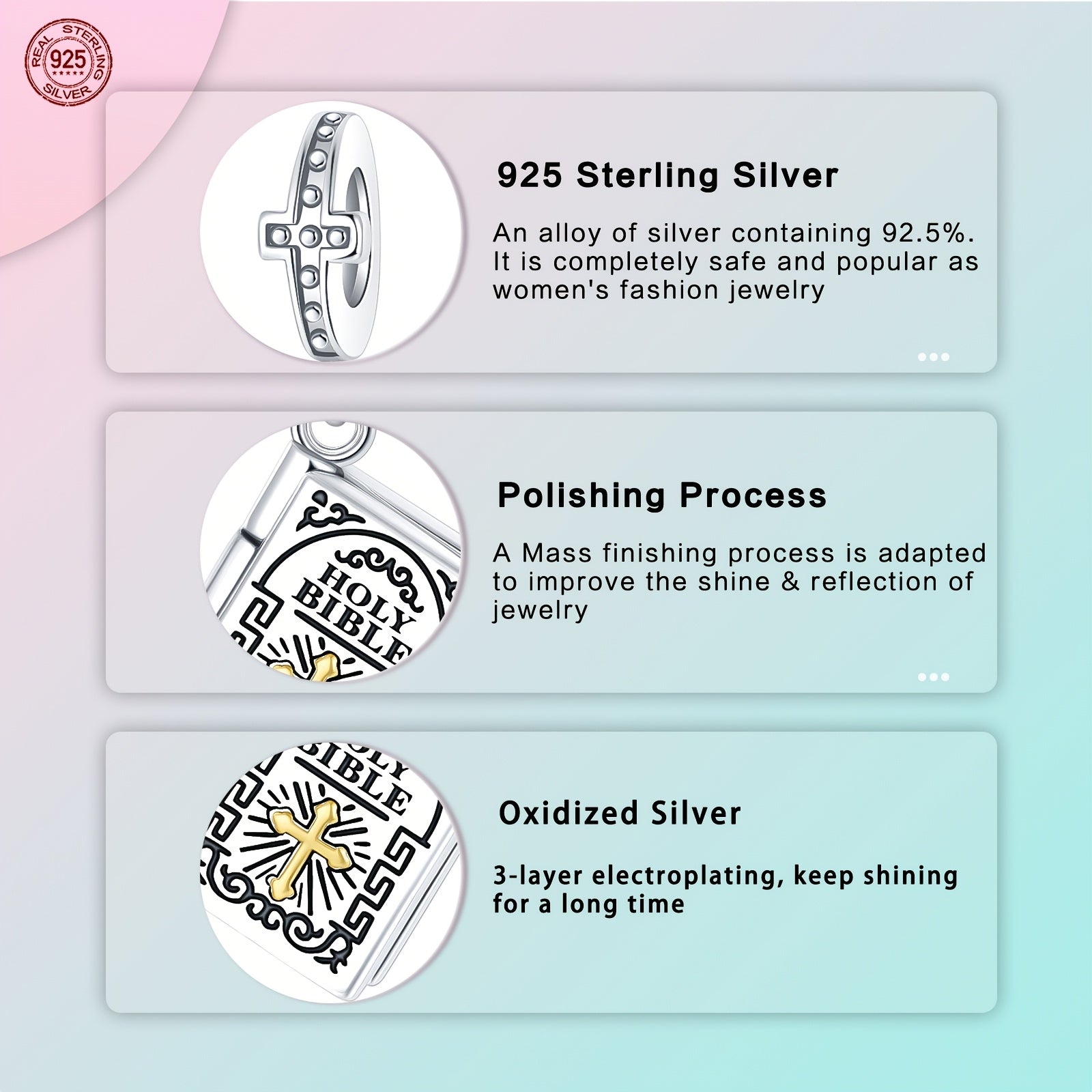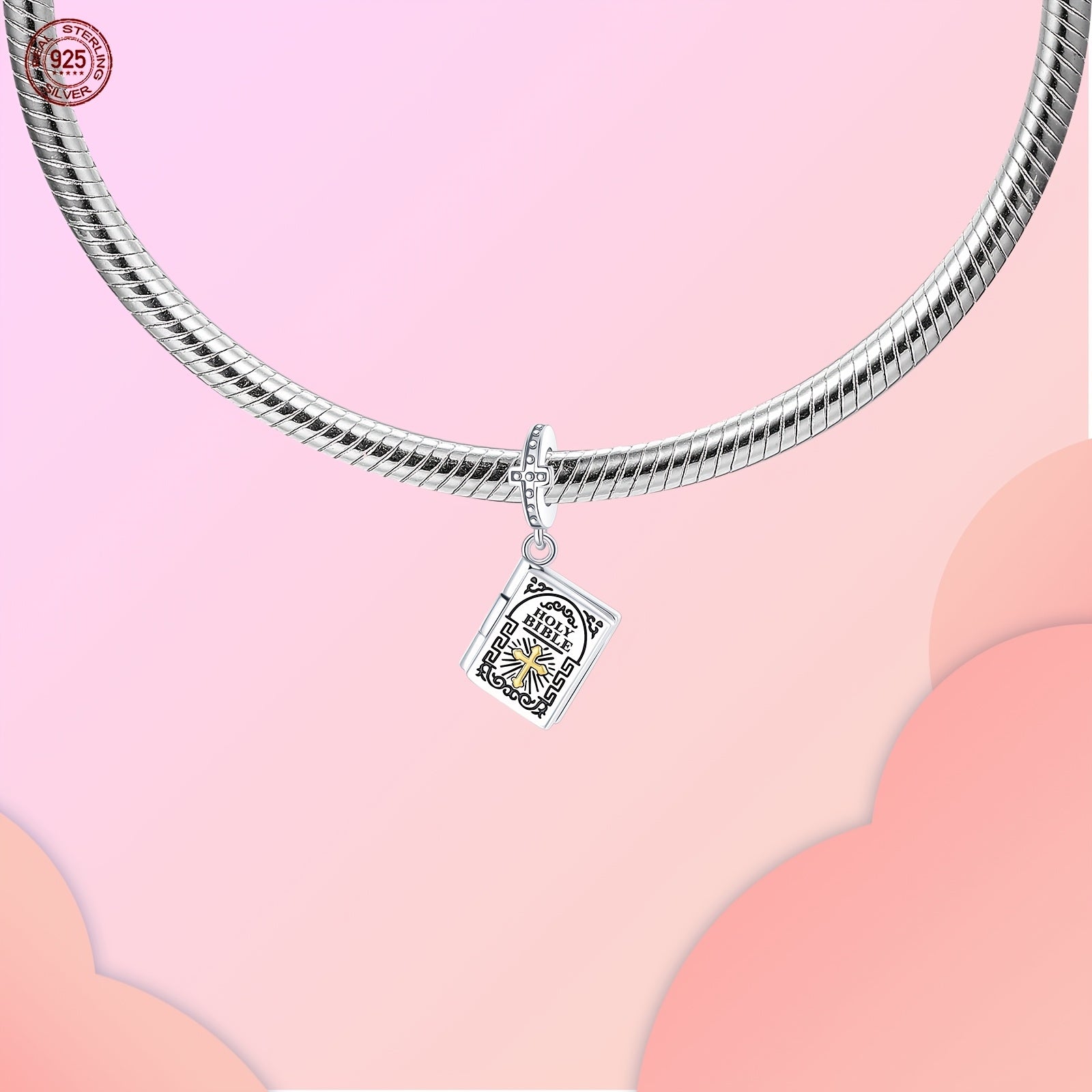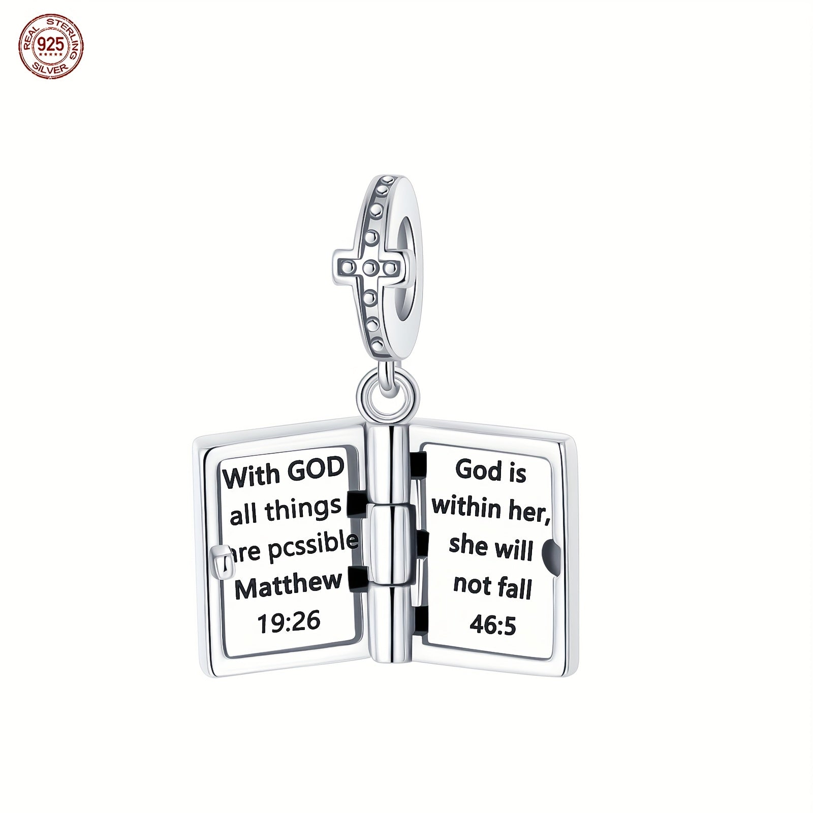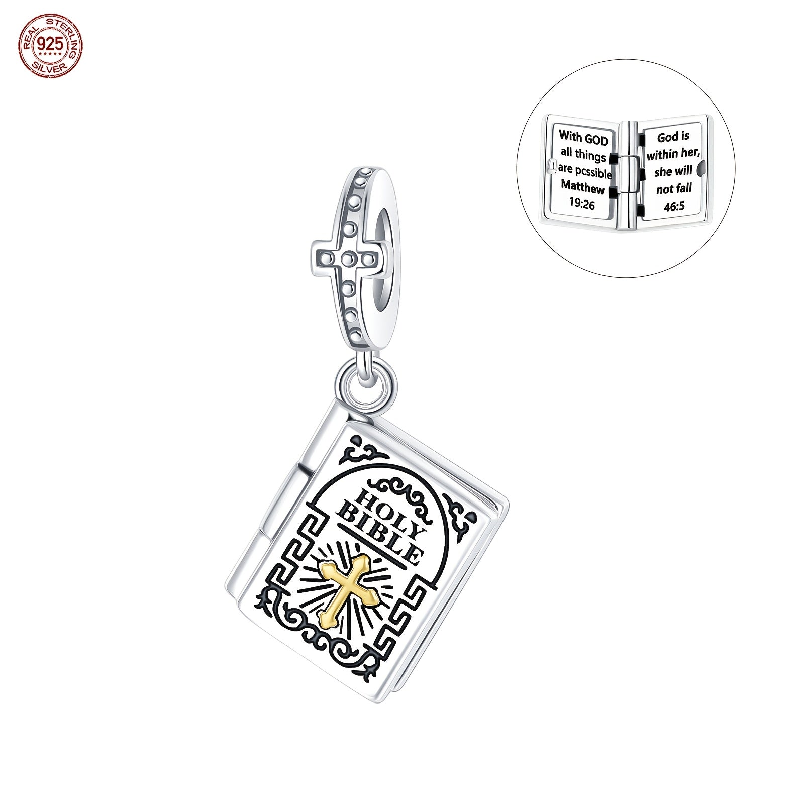 This 925 pure Silvery silver religious series Bible cross HOLY BIBLE pendant bracelet is perfect for original bracelet or necklace jewelry making for Women.