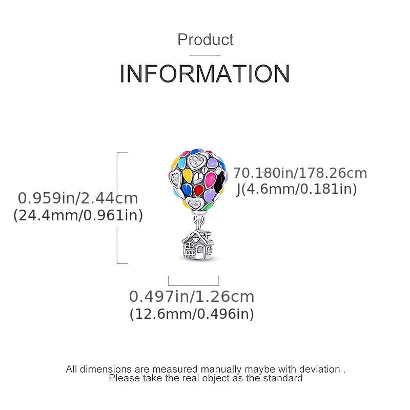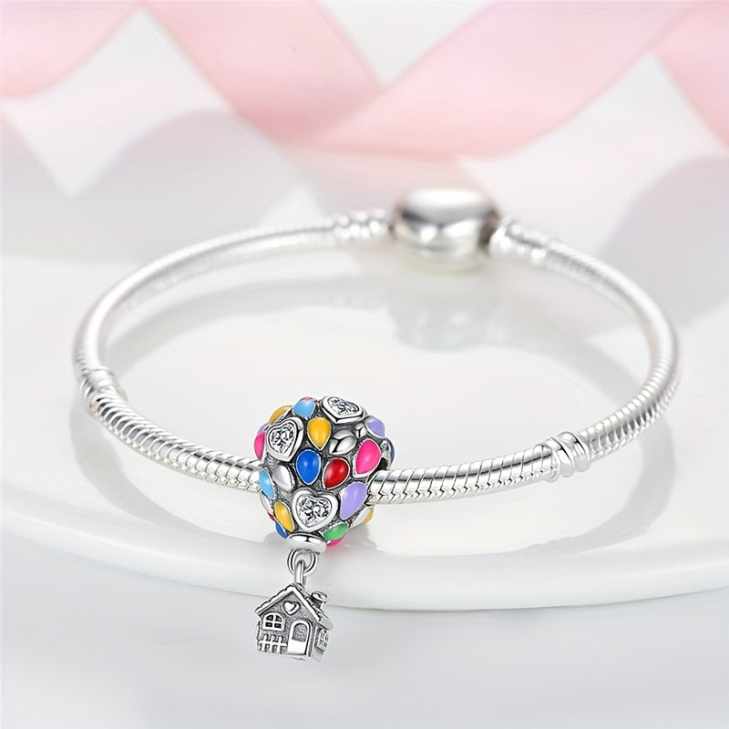Add a touch of whimsy with this 925 sterling silver hot air balloon pendant featuring colorful accents. Perfect for women's high-end jewelry, this pendant weighs 5g and is a charming addition to any original 3mm bracelet.