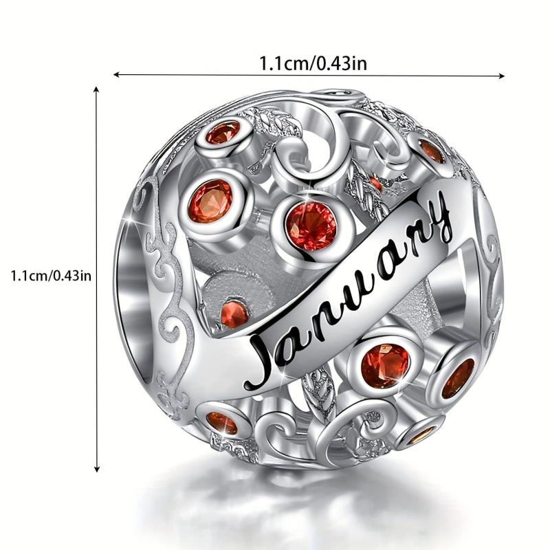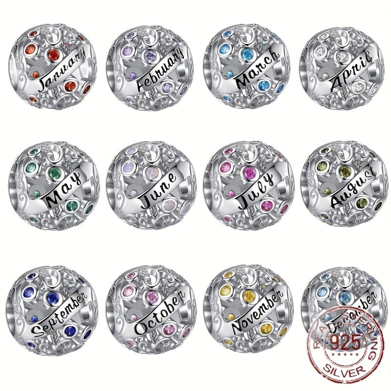 Add these 925 sterling silver round charm beads to your bracelet or necklace for a personalized touch. Each bead represents one of the twelve months.