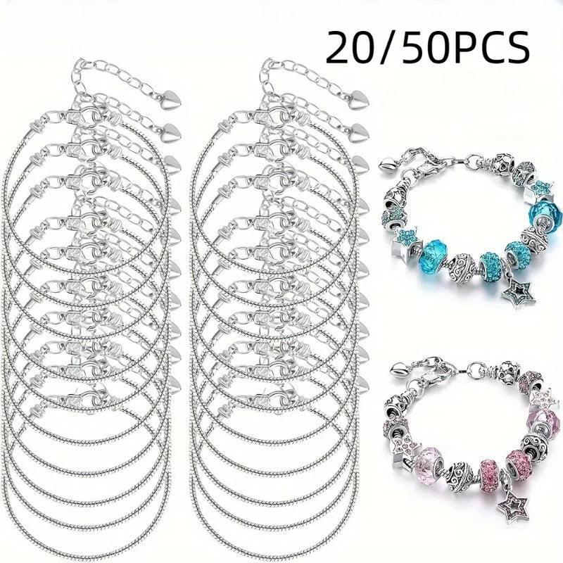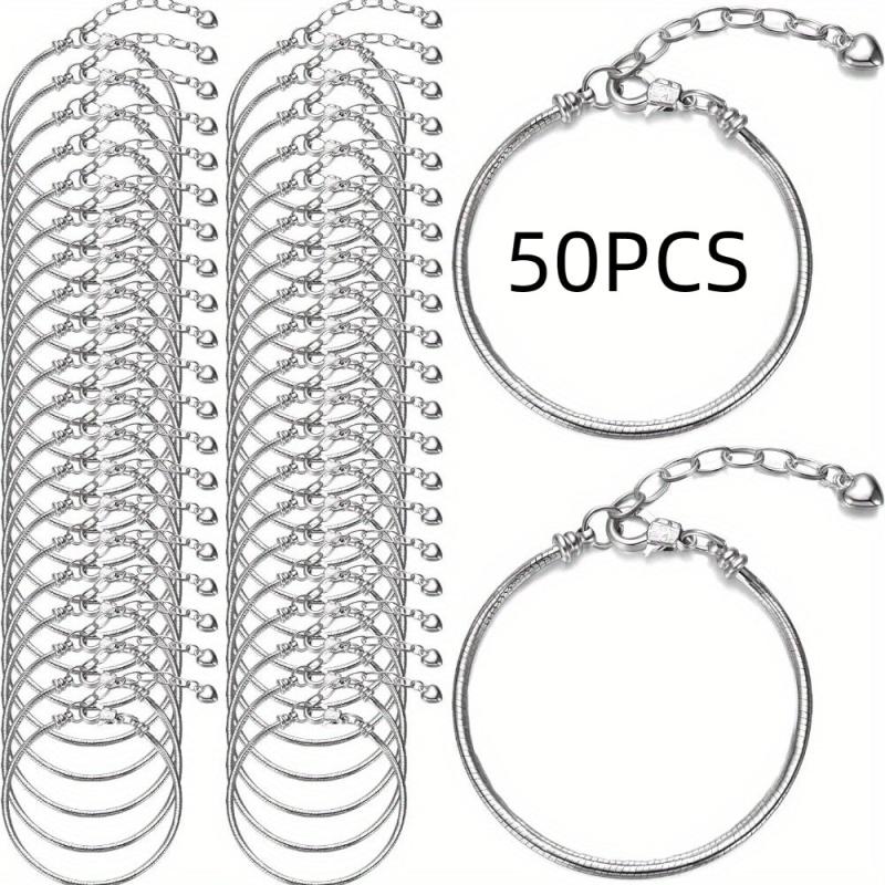 Create your own unique jewelry with this set of 50 adjustable snake chain bracelets. Each bracelet comes with a lobster clasp and extension chain for easy customization. Perfect for DIY enthusiasts!