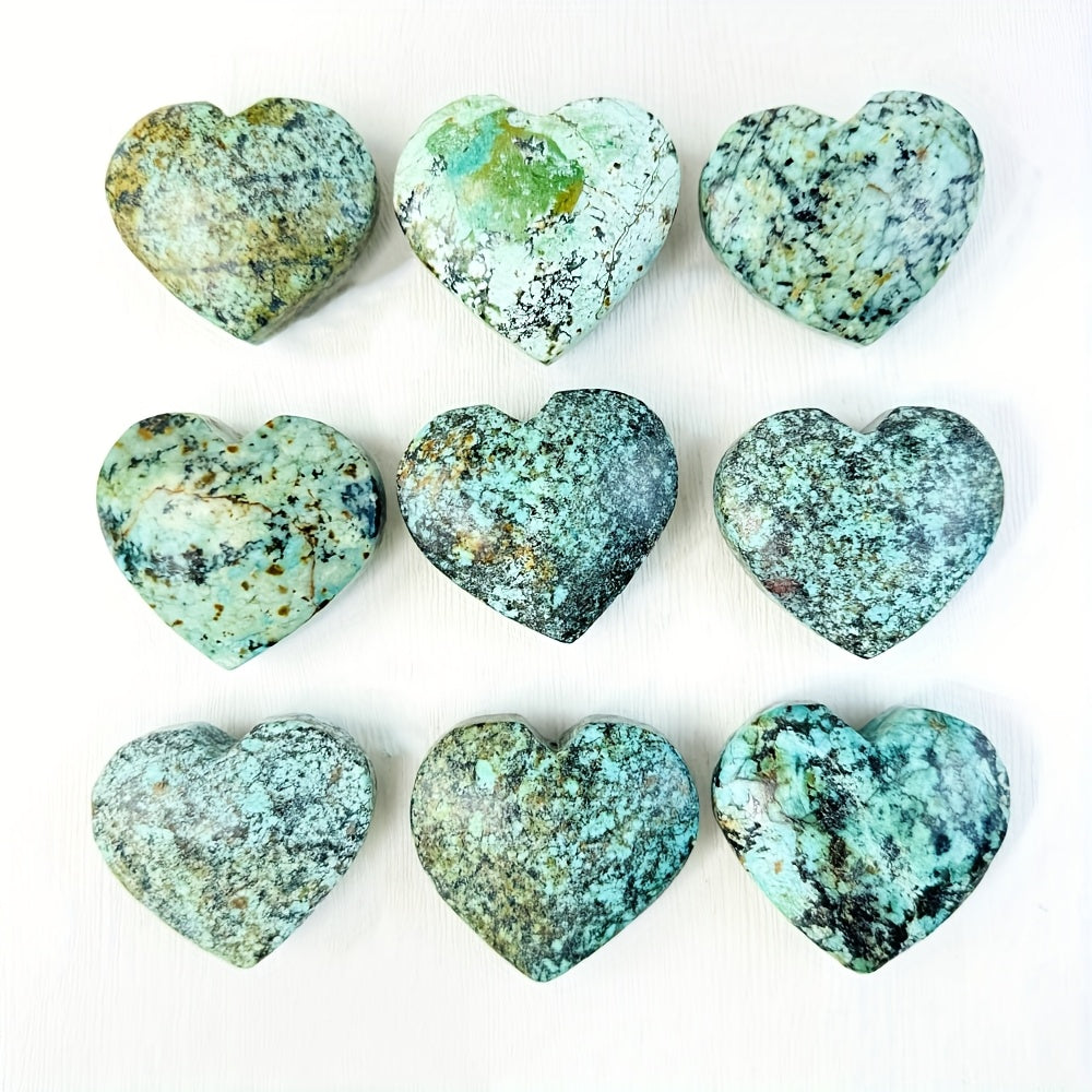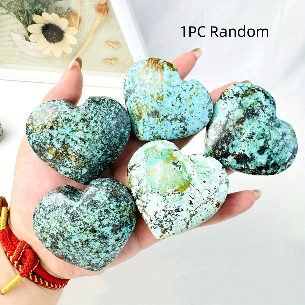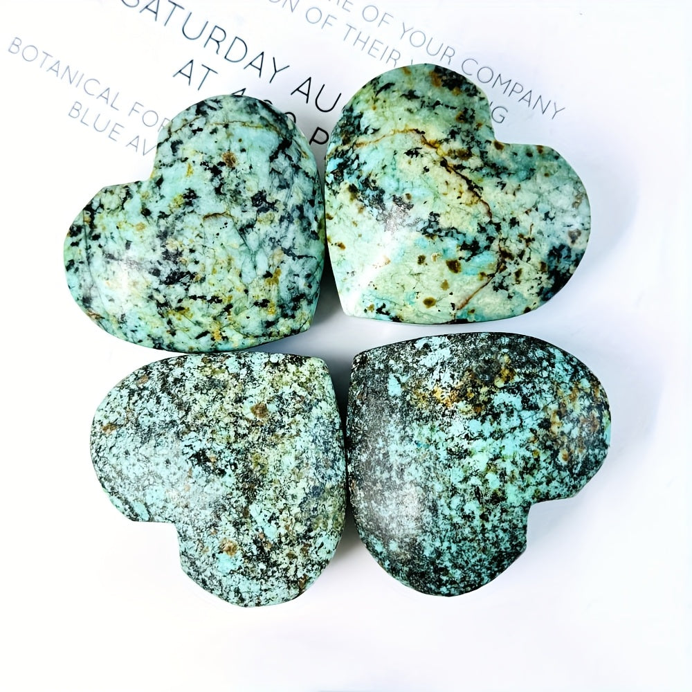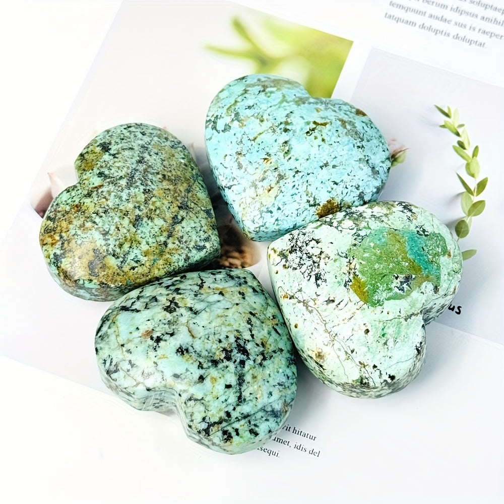 Add a touch of natural beauty to your home with this large African Turquoise crystal heart stone. Featuring a green marble texture, it's perfect for Mother's Day, Thanksgiving, or as an artistic tabletop decoration.