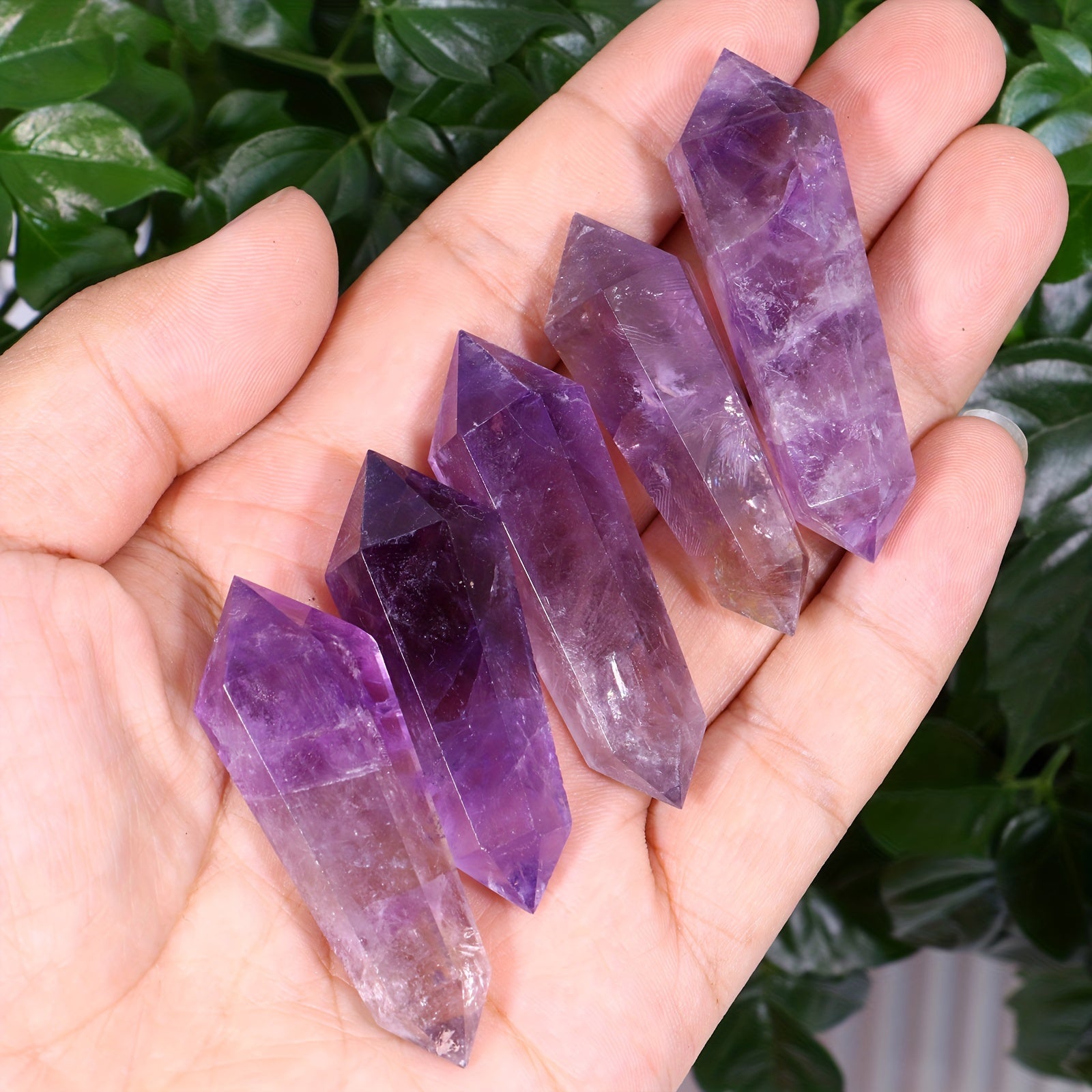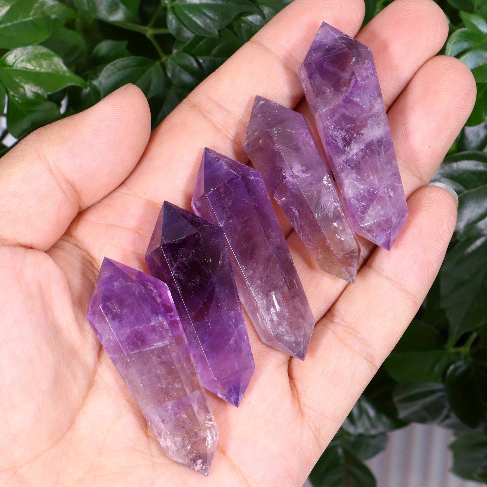 This double-sided amethyst pencil features a bullet shape, making it perfect for creating DIY gemstone jewelry. It is a creative and healing crystal gift idea.