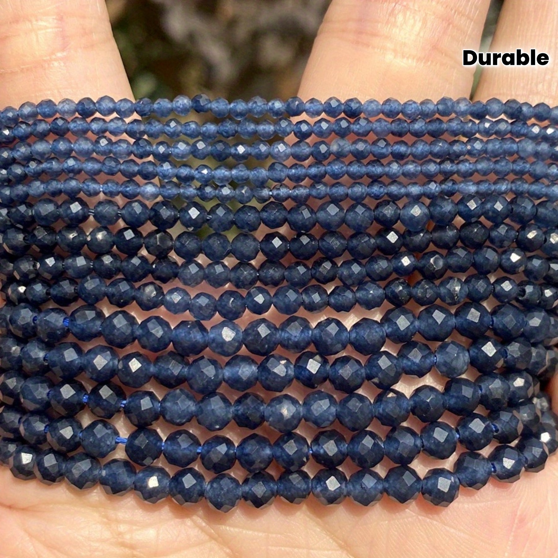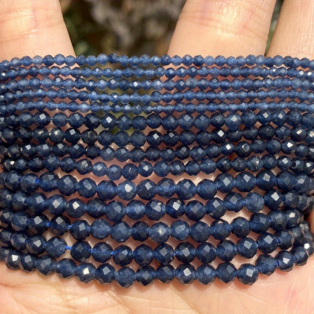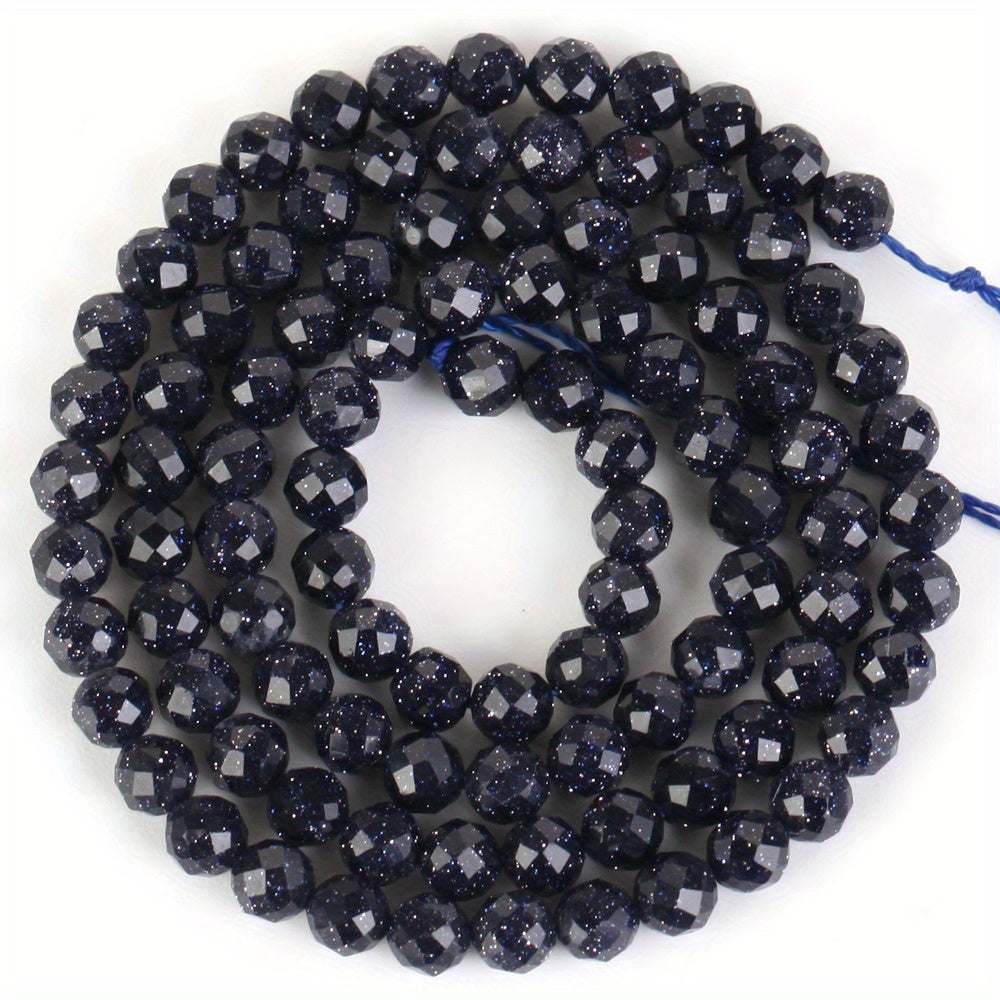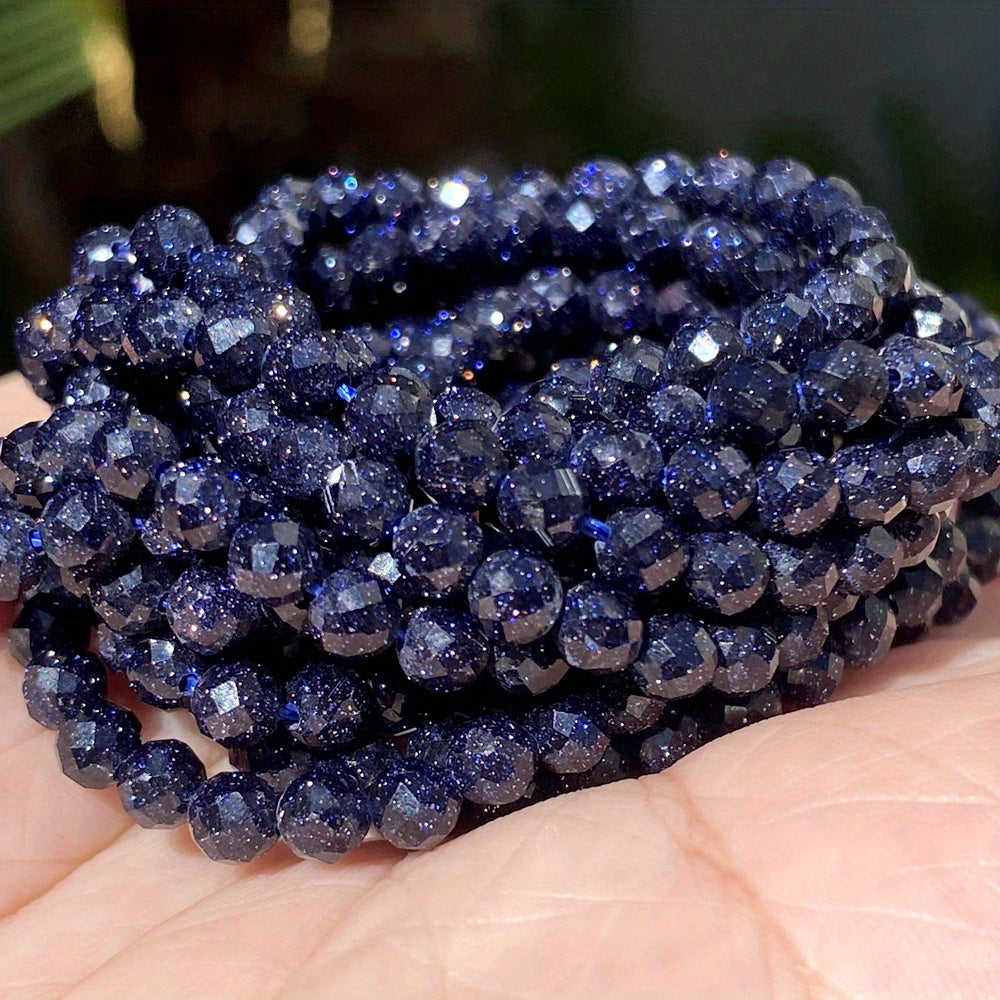 Natural faceted sandstone beads in deep navy color with sparkling facets, perfect for creating bracelets and necklaces. Durable and high-quality natural beads for your crafting needs.