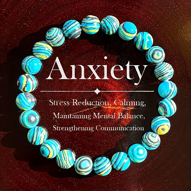 Calming & Strength Enhancement Turquoise Brown Gray Golden Green Marbled Beads Mental Balance