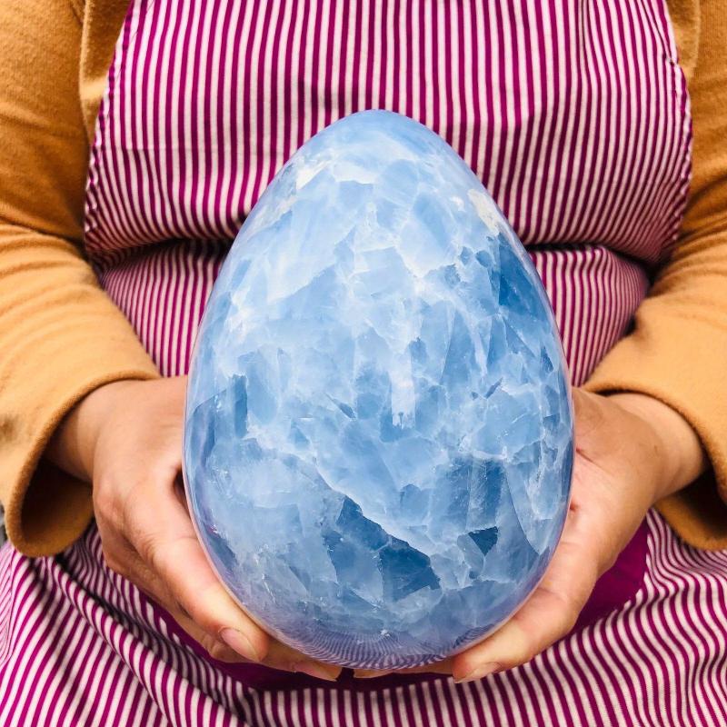 This beautiful Celestite Crystal Egg is perfect for educational science projects and adds a touch of elegance to your home decor. It's a great addition to your crystal collection or as a holiday decoration.