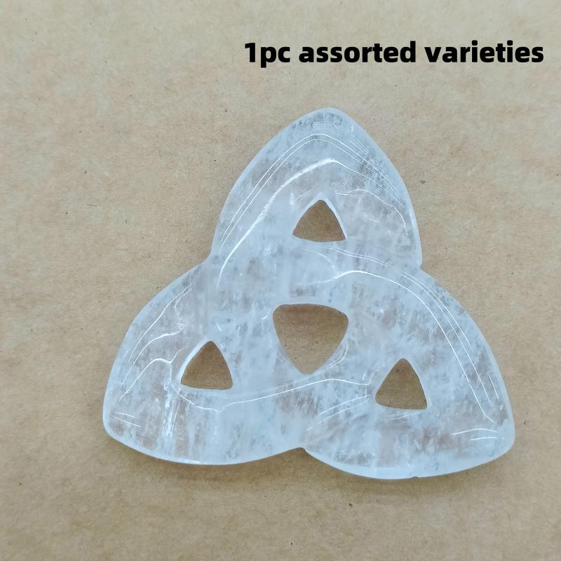 This natural stone Celtic crystal piece is hand carved into a triangular hollow shape, perfect for room decoration. It can also be used as a DIY pendant or necklace pendant.