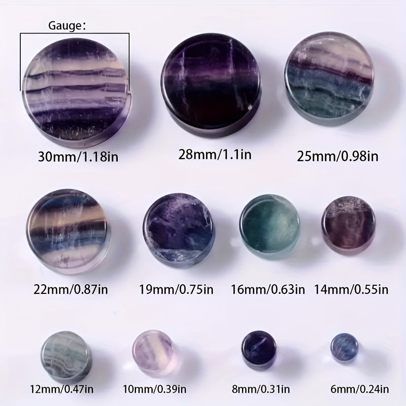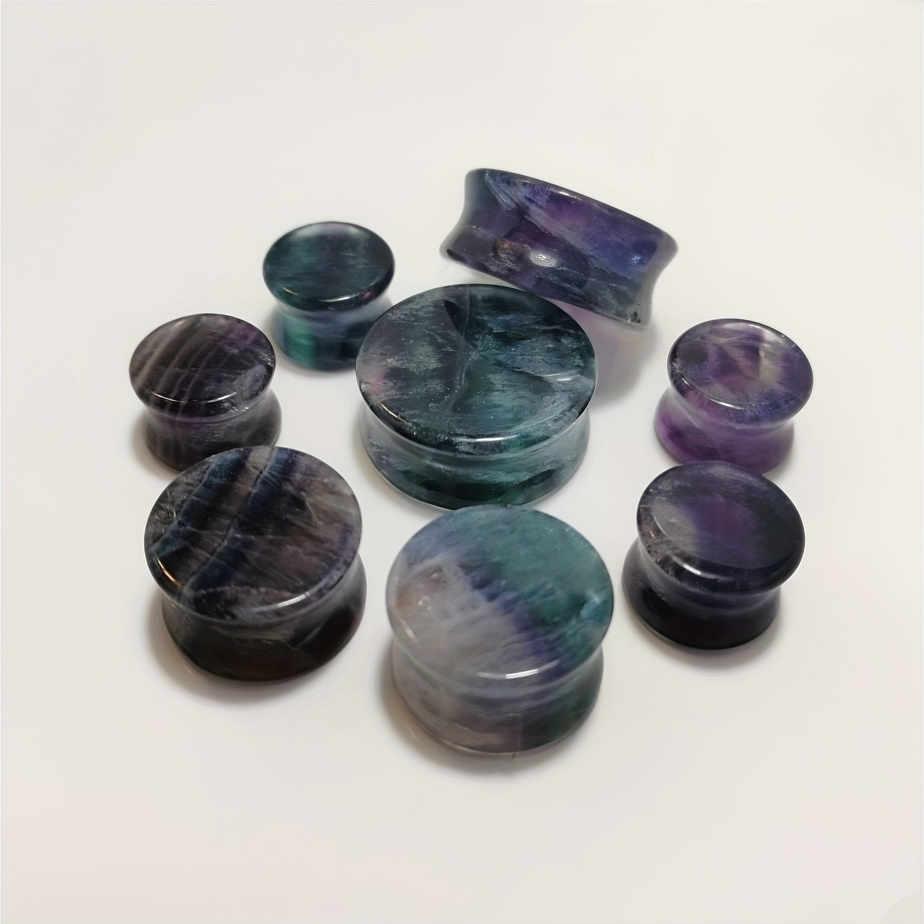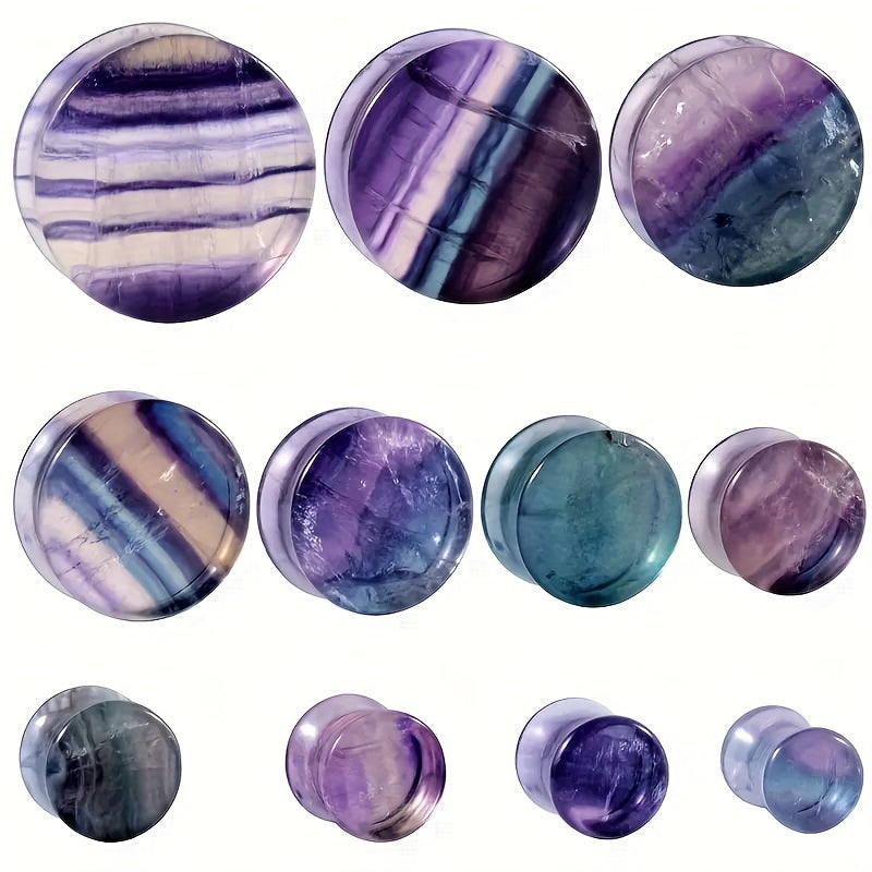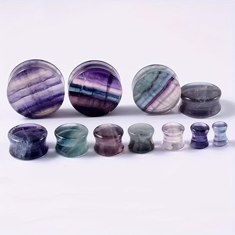 Enhance your style with these natural fluorite stone double solid flared plug ear tunnels. Perfect for body piercing enthusiasts.