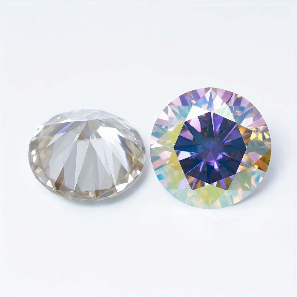 Enhance your jewelry creations with this colorful Moissanite gemstone. Featuring a round brilliant cut and D colorless clarity, it is perfect for rings, pendants, and earrings.