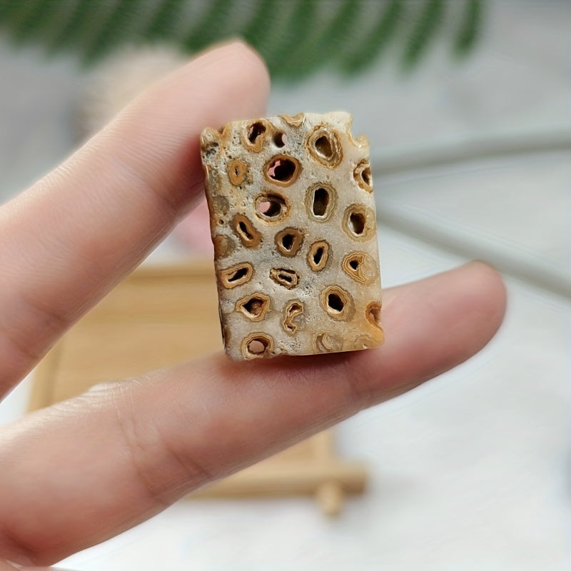 This coral jade loose stone is a natural crystal geode, perfect for DIY projects and chakra healing. Each stone is unique and can be used for various healing practices.
