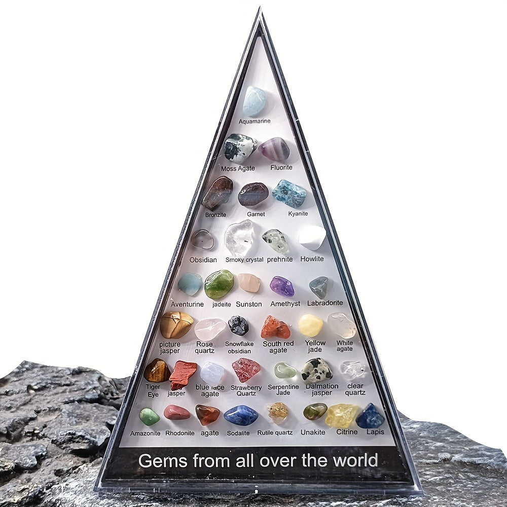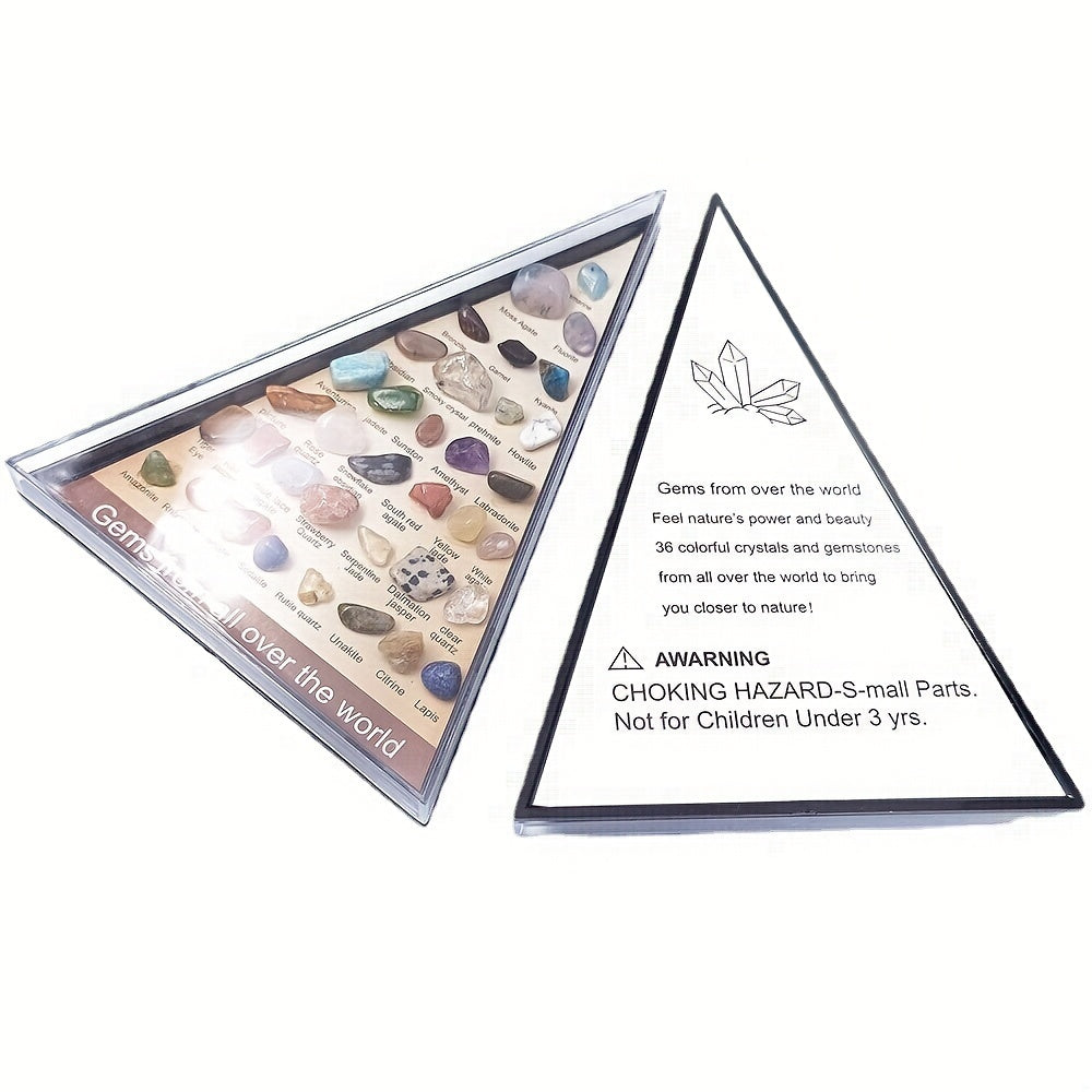 This set includes 36 kinds of natural crystal agate gemstones, perfect for teaching, mineral enthusiasts, and rock crystal collectors. Ideal as a unique Christmas gift.