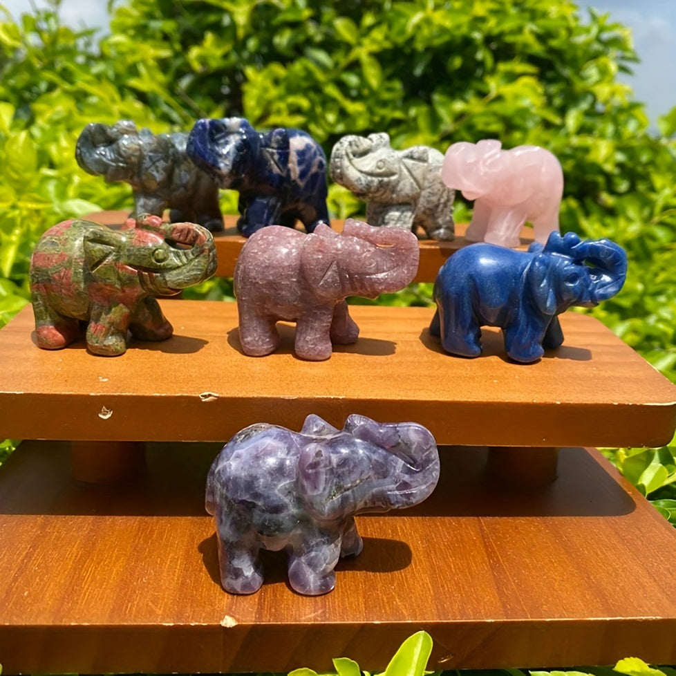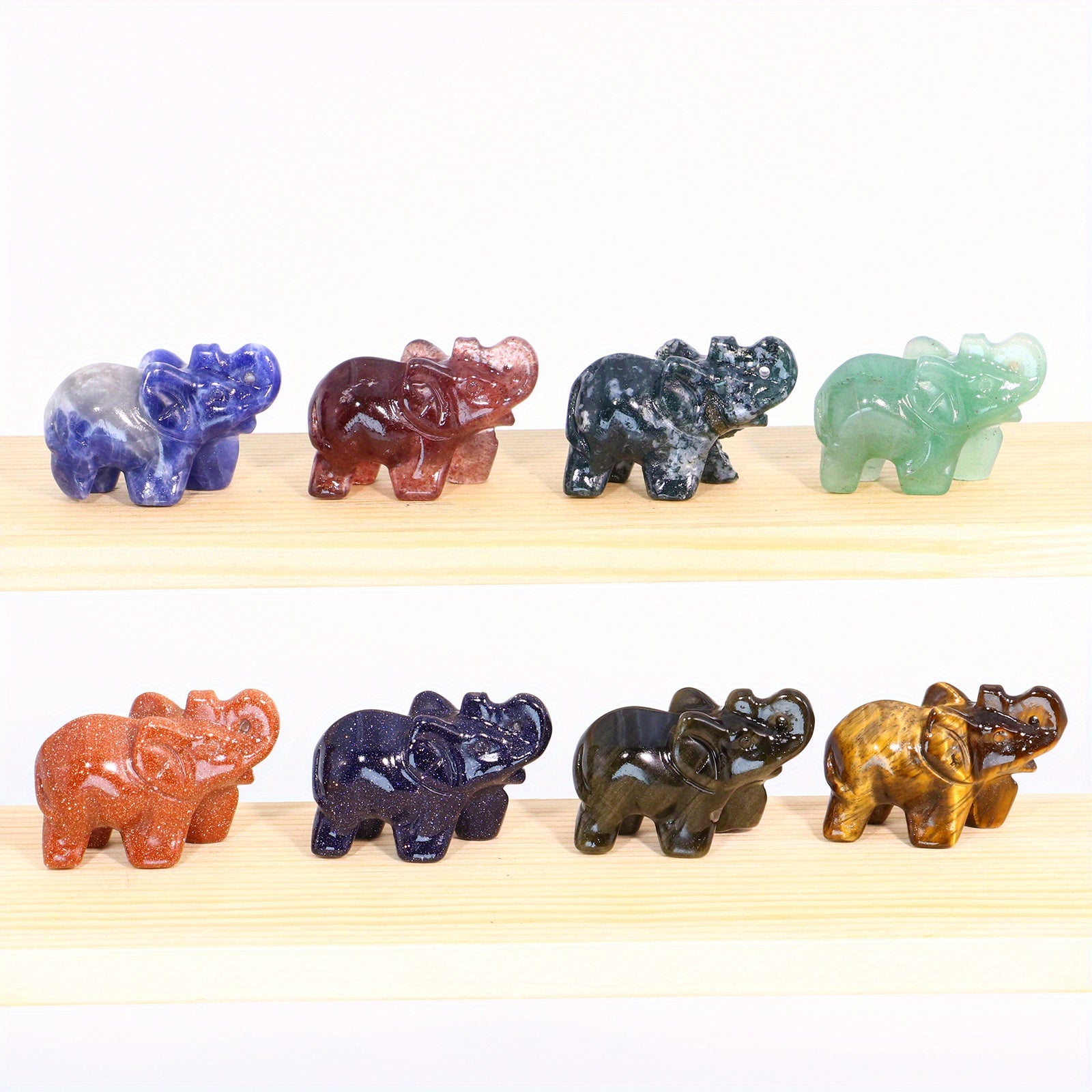 Enhance your space with this exquisite natural crystal elephant statue. Crafted from Tiger's Eye and Green Aventurine, this healing crystal gift is perfect for home decoration.